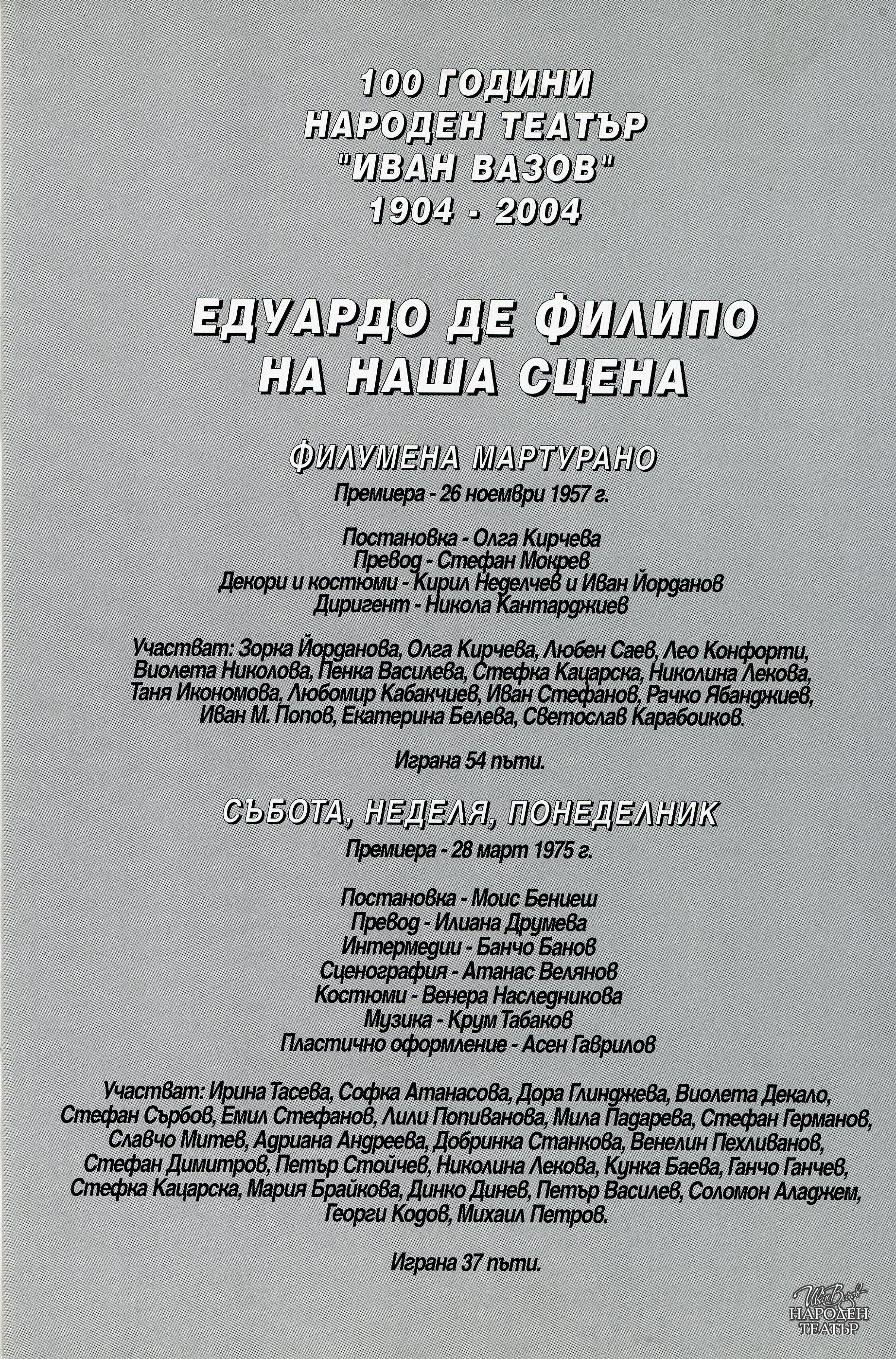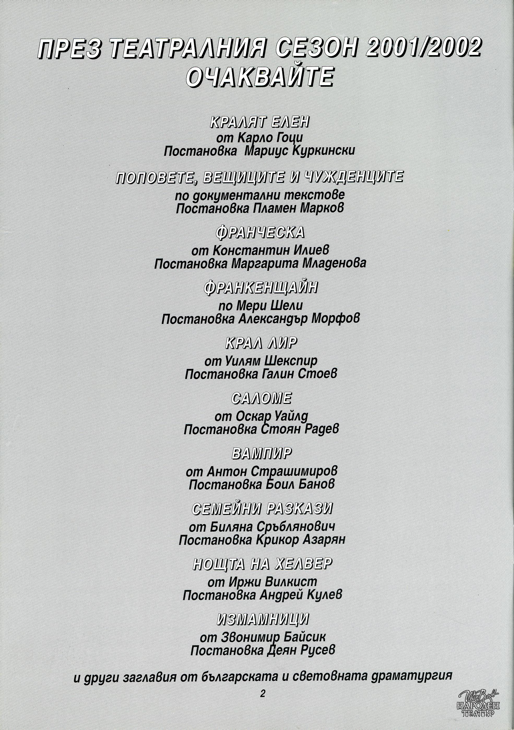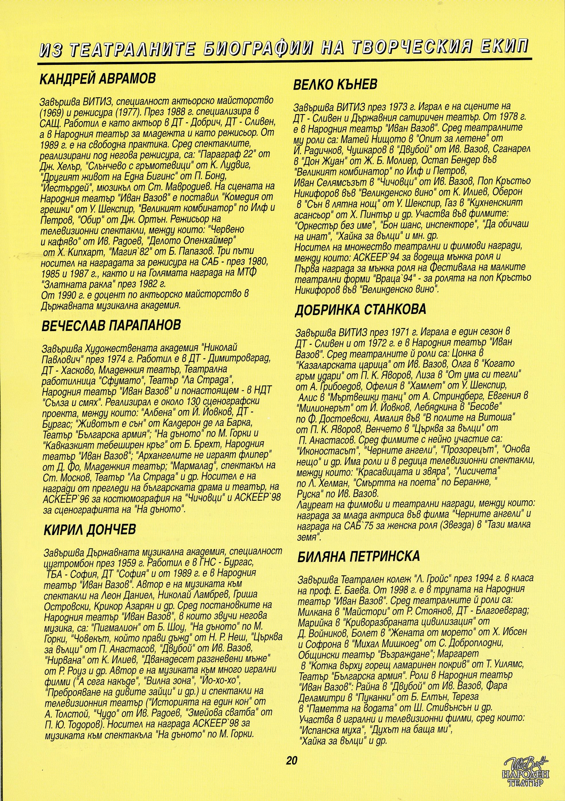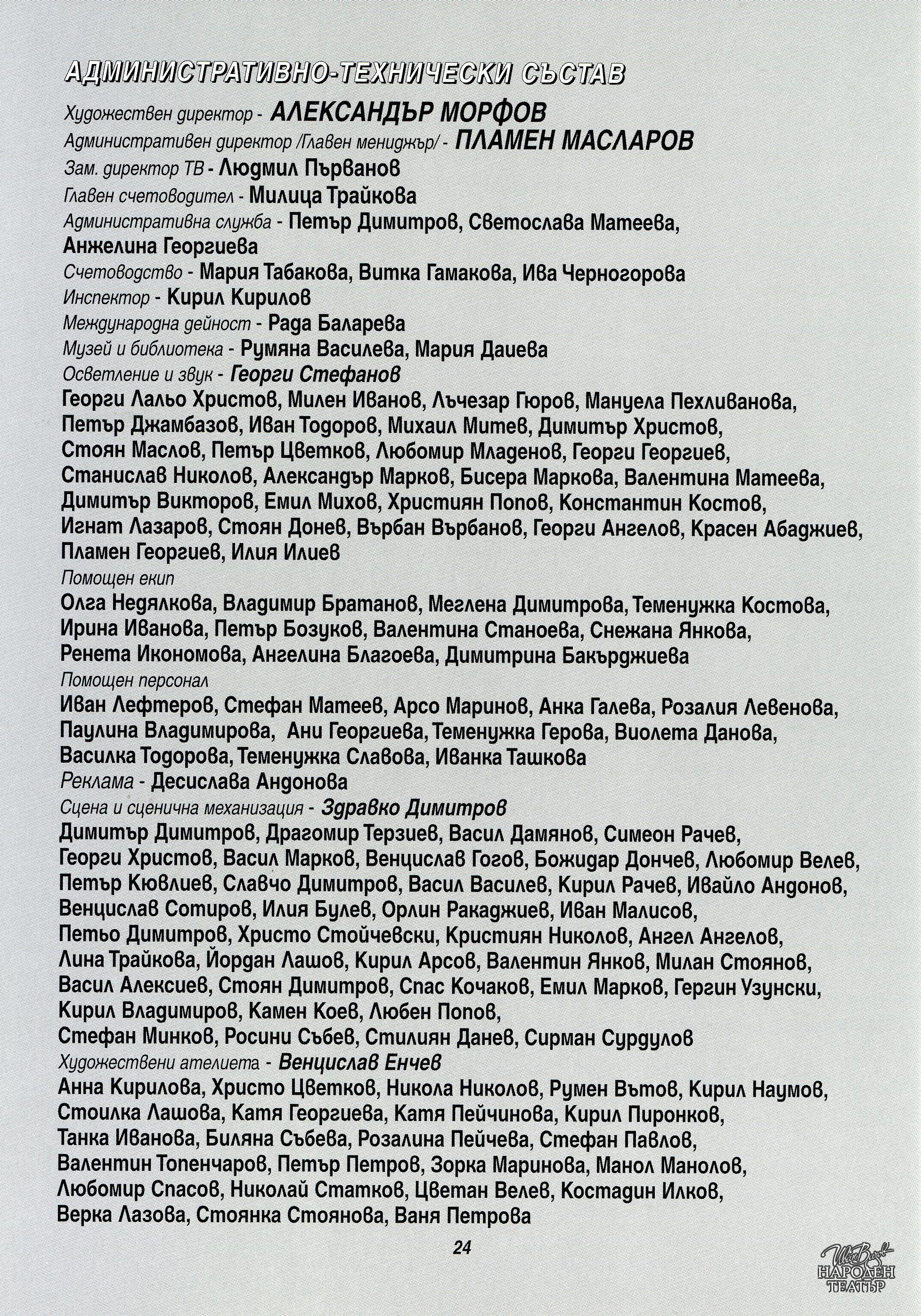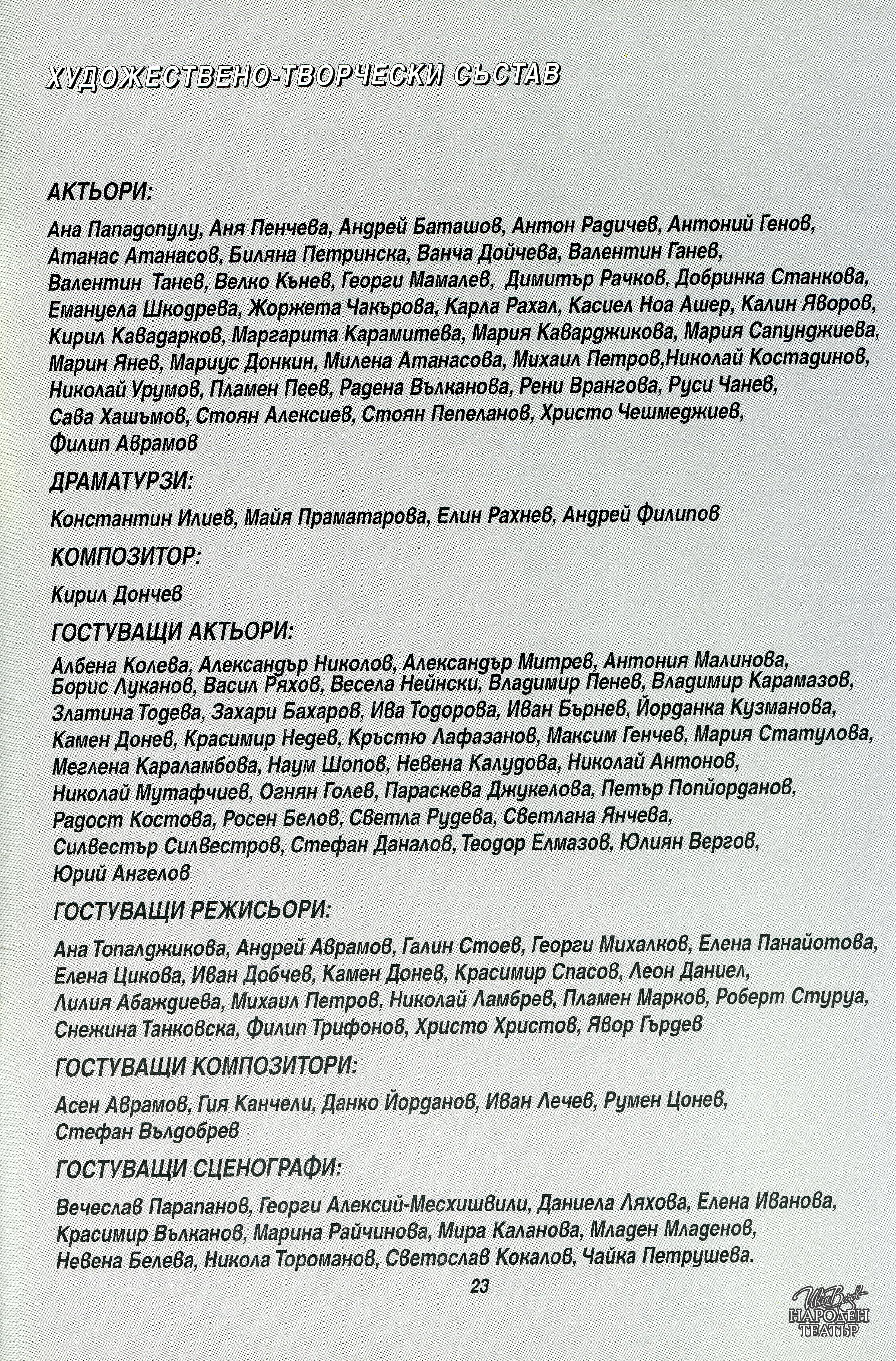 | Институция | Народен театър „Иван Вазов“, гр. София, България |