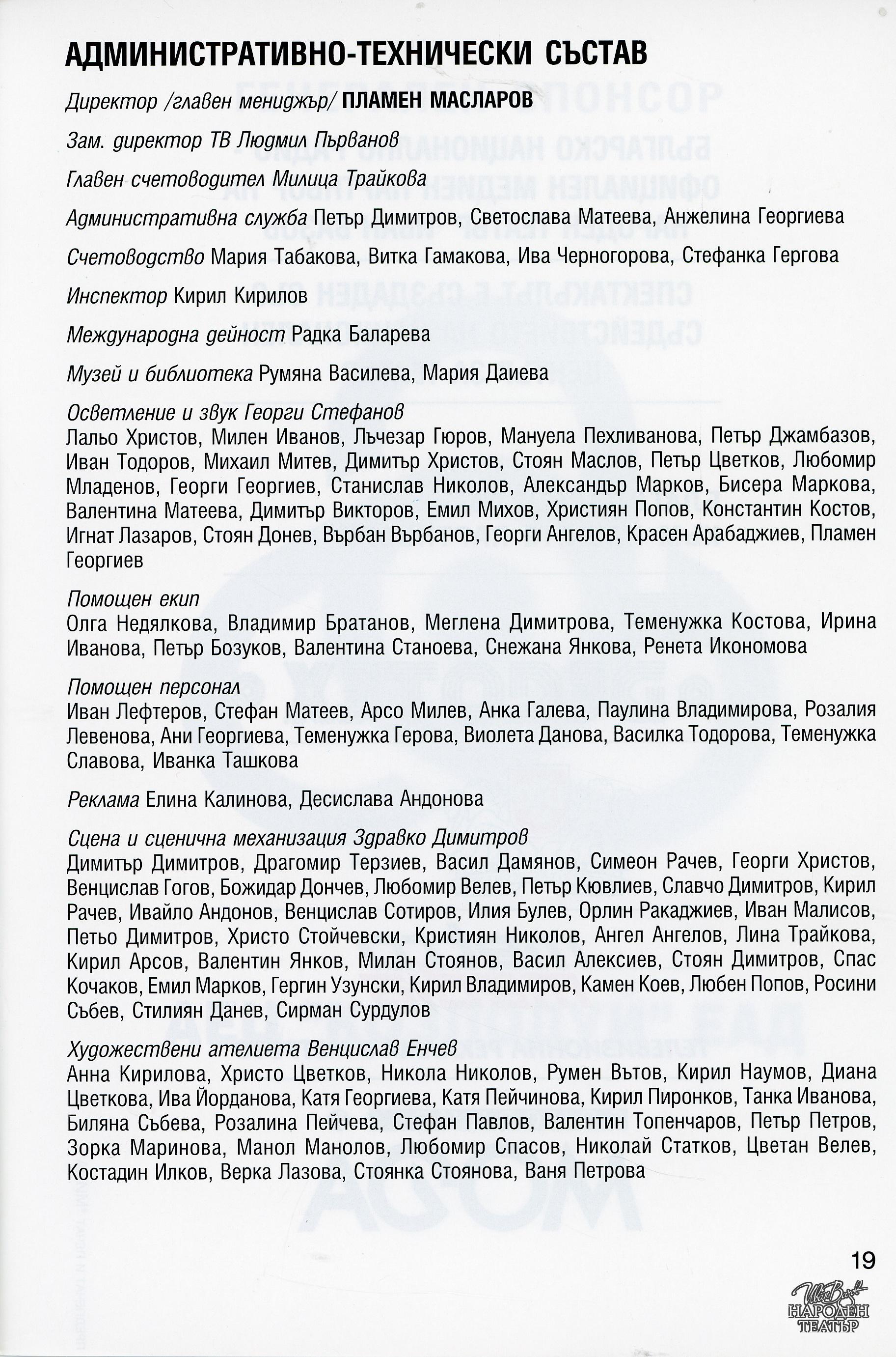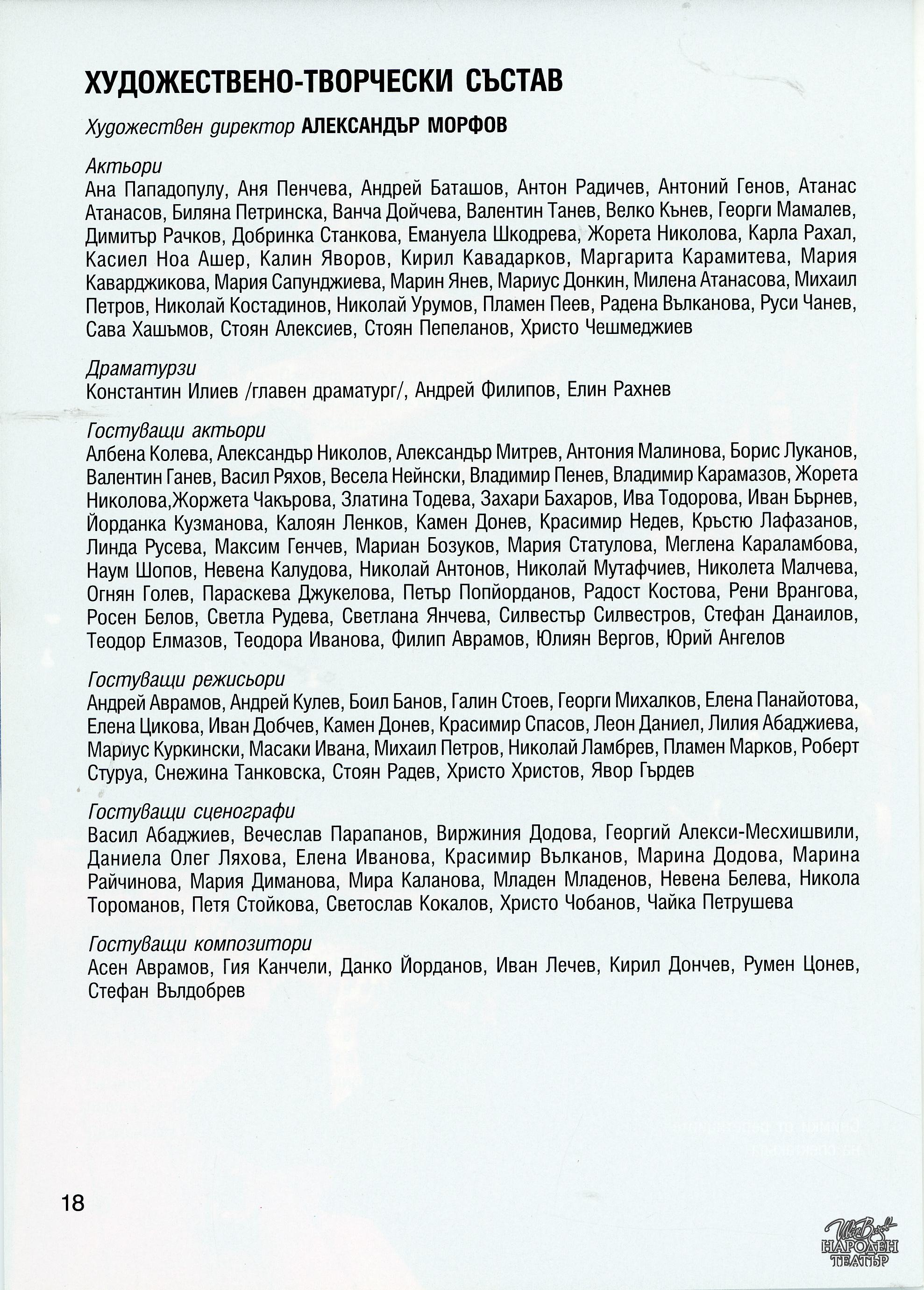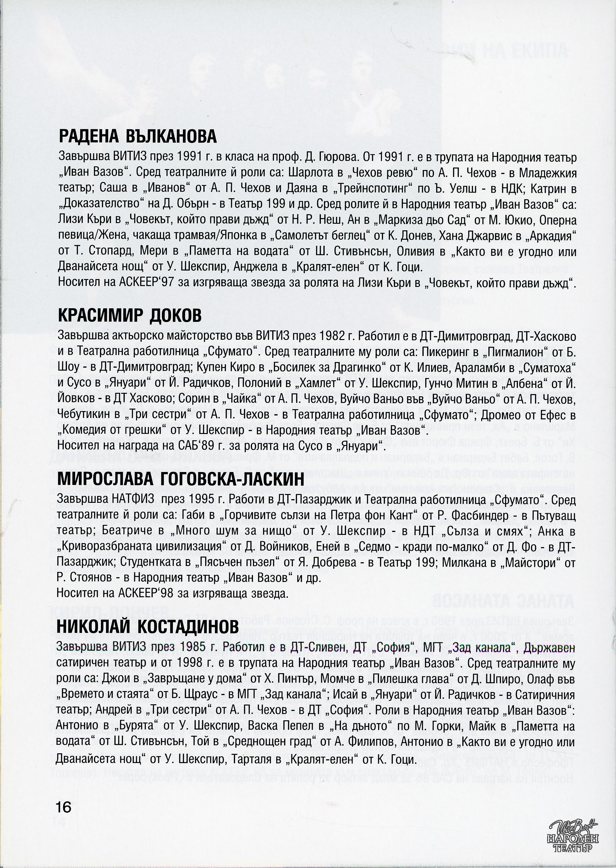 | Институция | Народен театър „Иван Вазов“, гр. София, България |