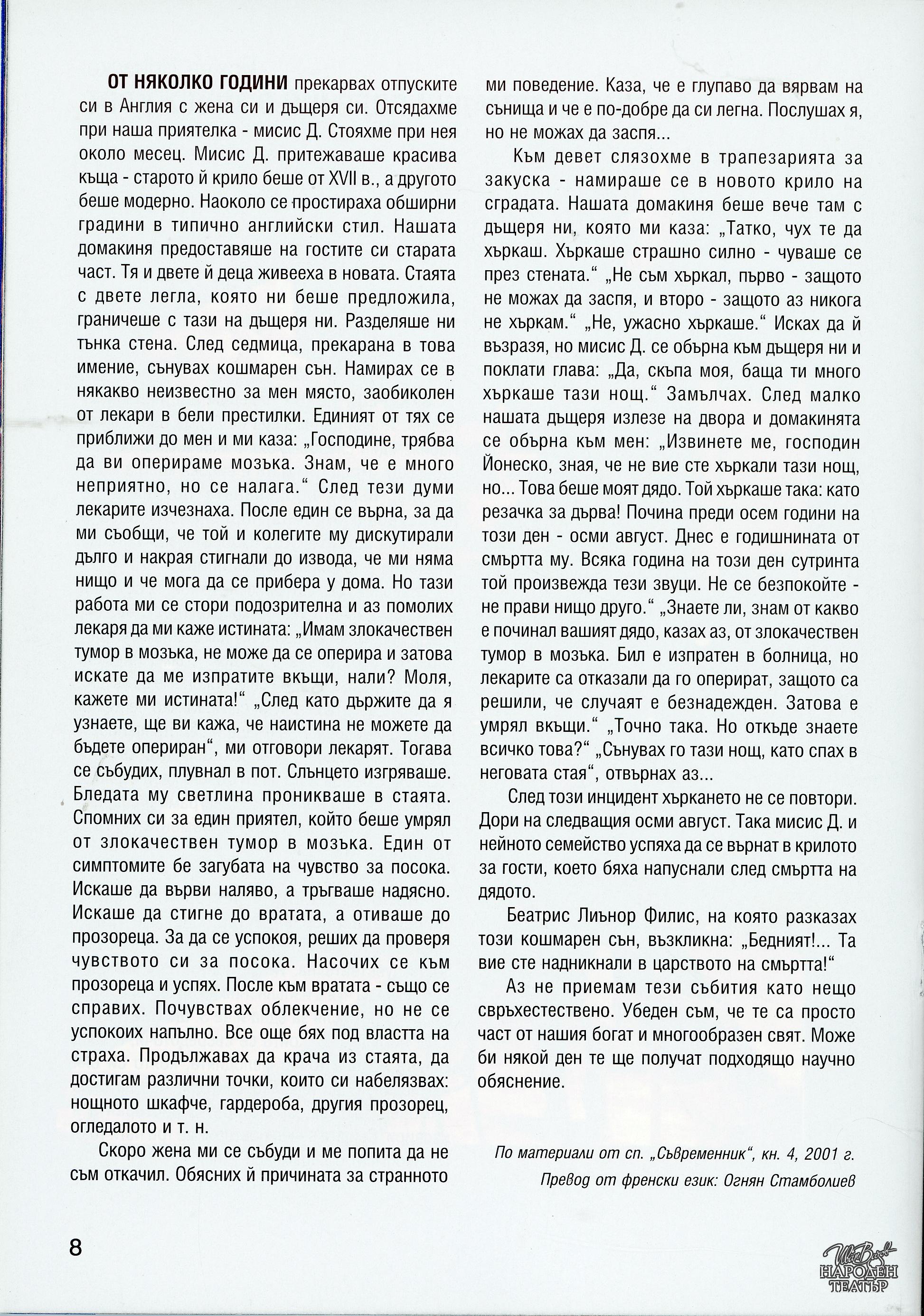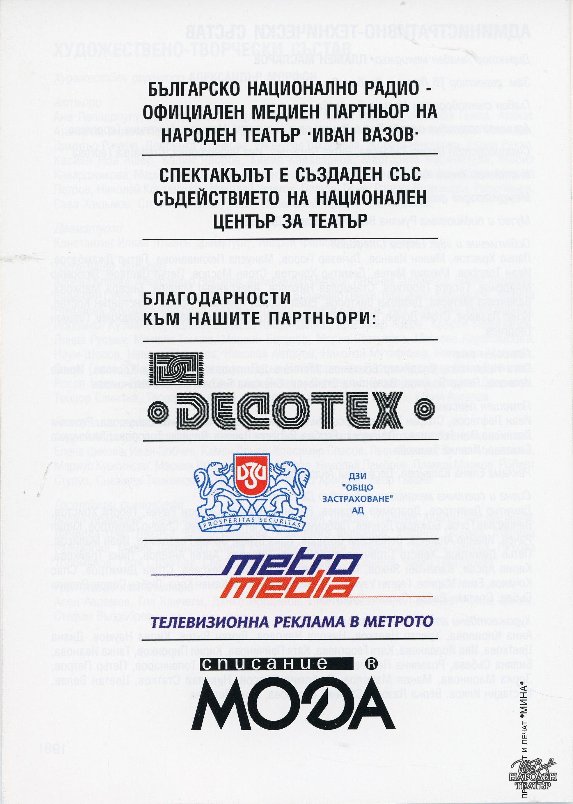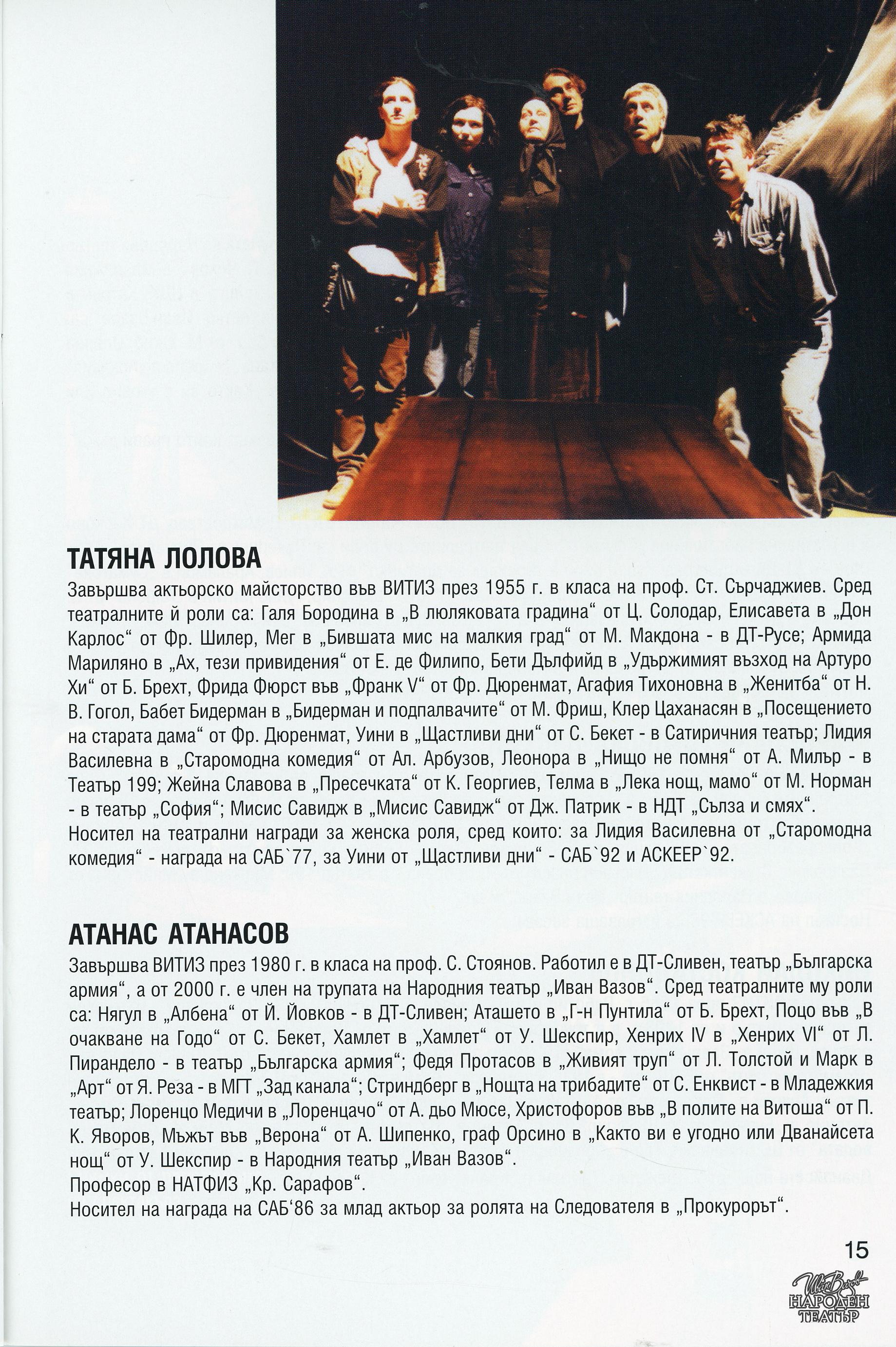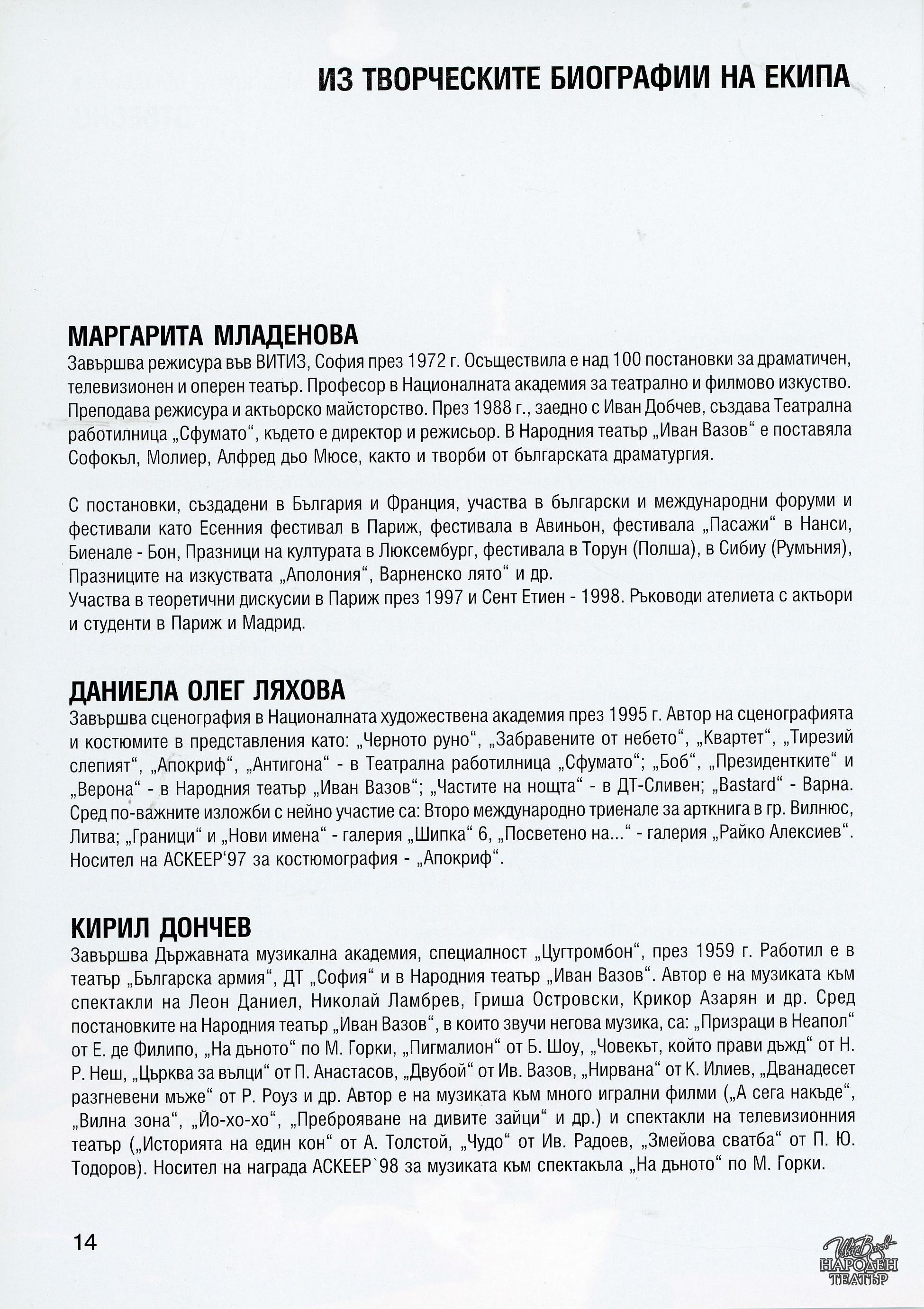 | Институция | Народен театър „Иван Вазов“, гр. София, България |
