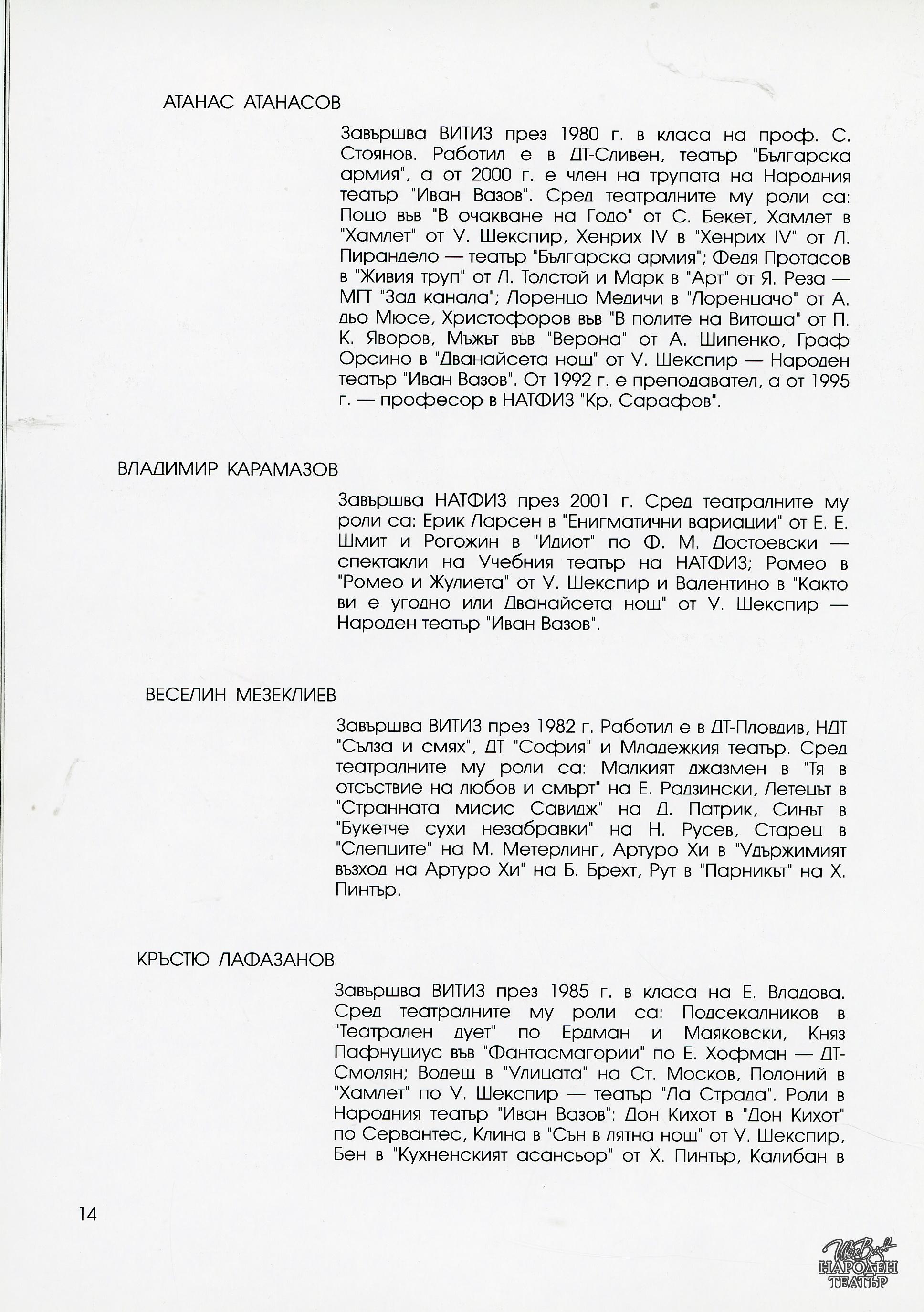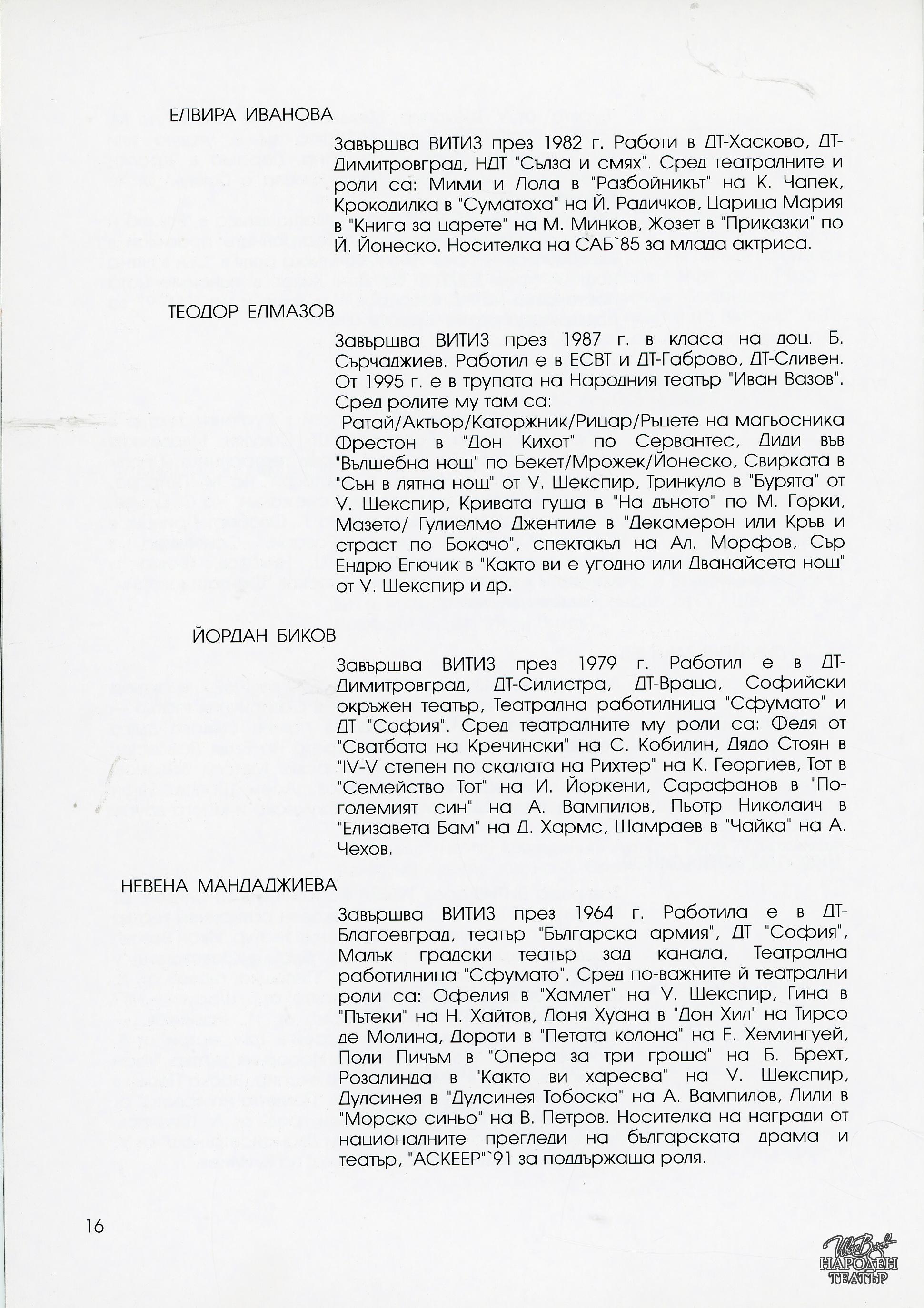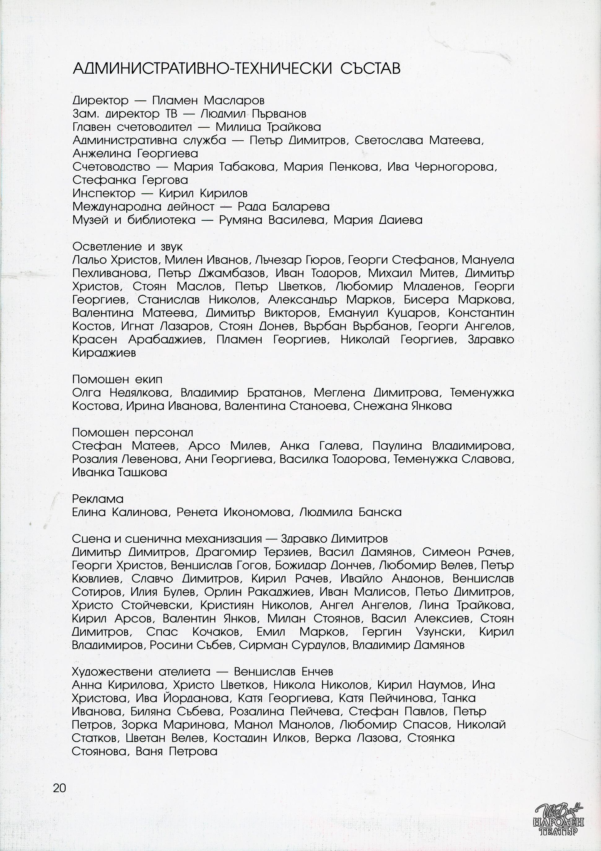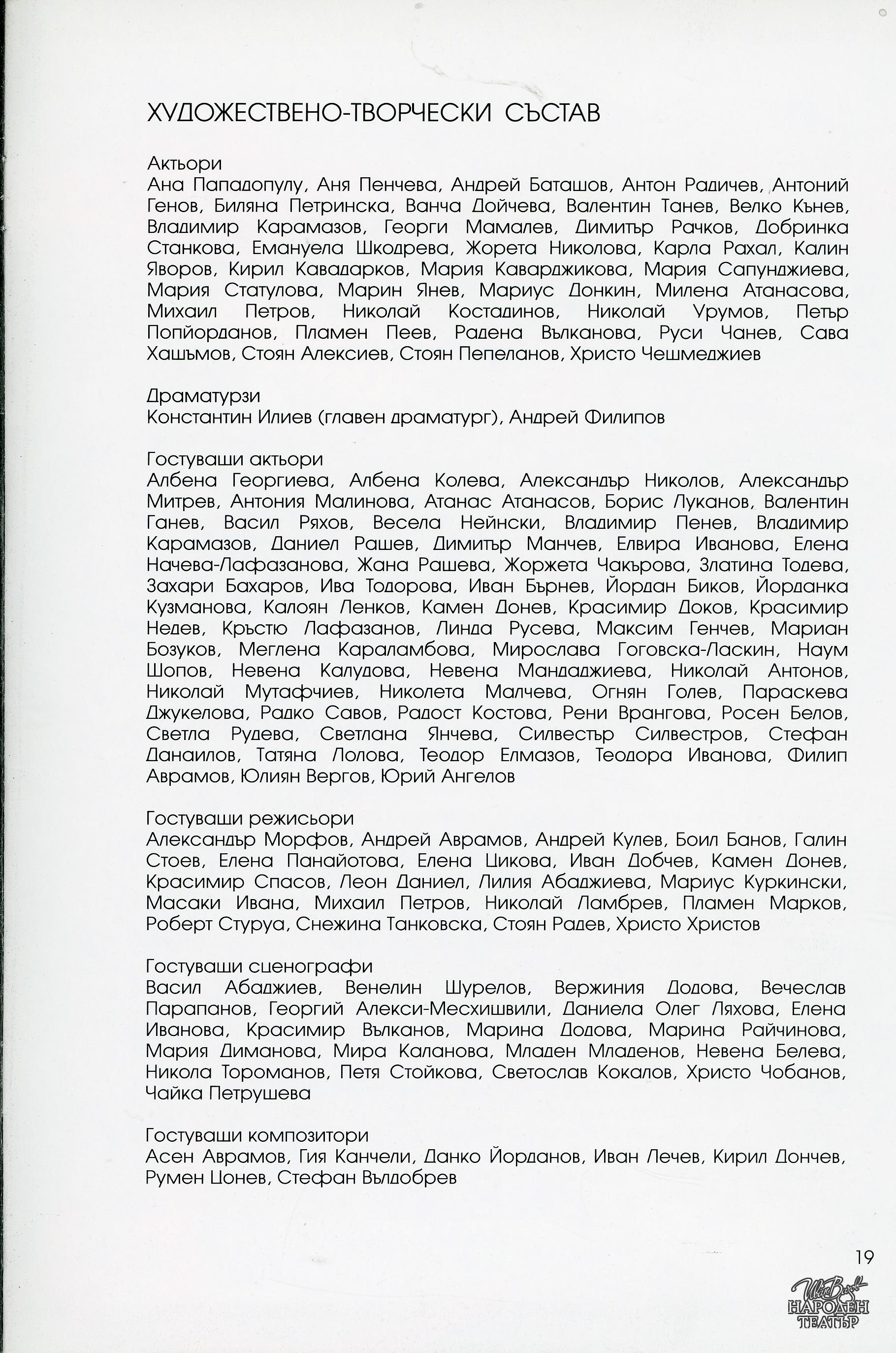 | Институция | Народен театър „Иван Вазов“, гр. София, България |