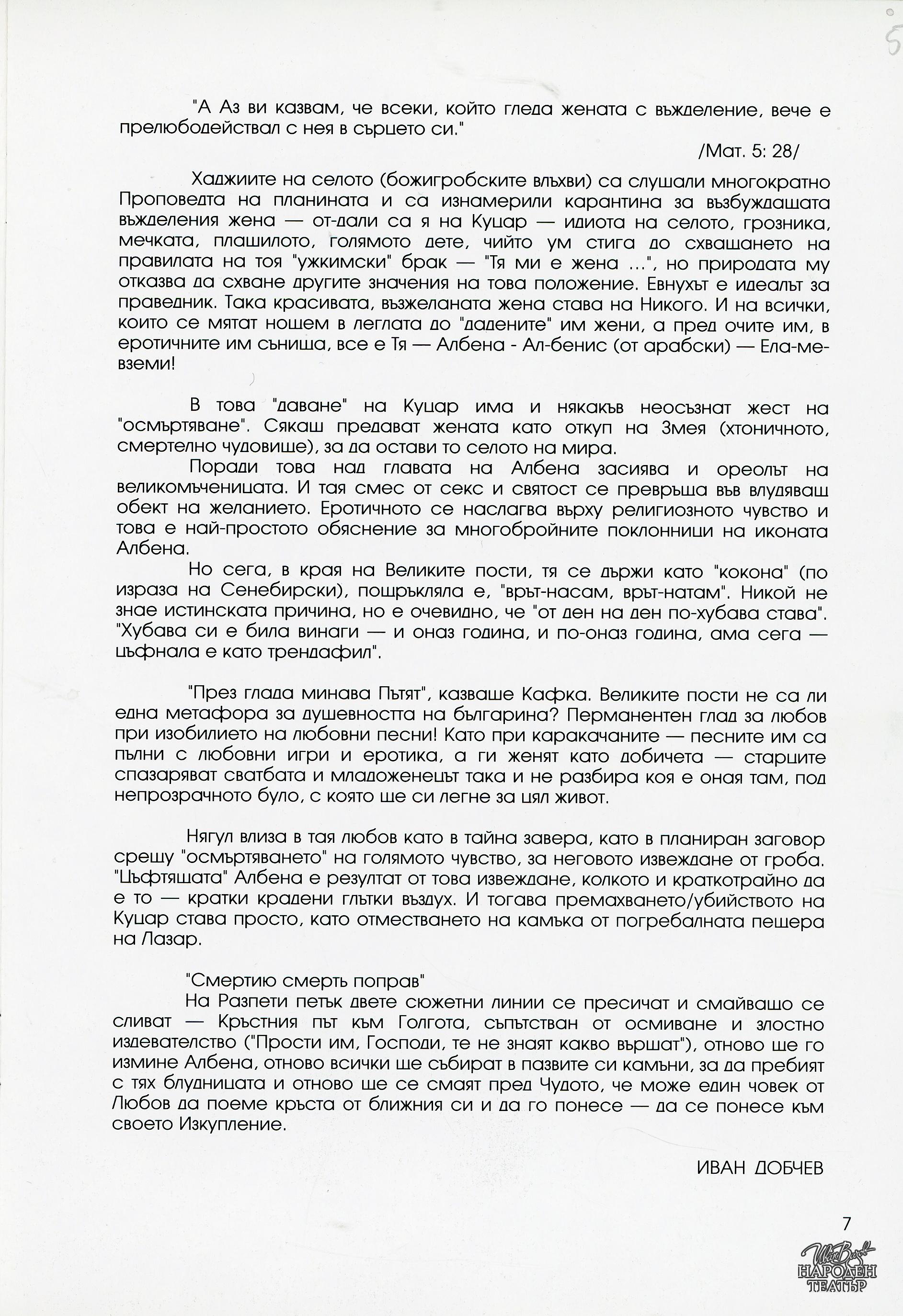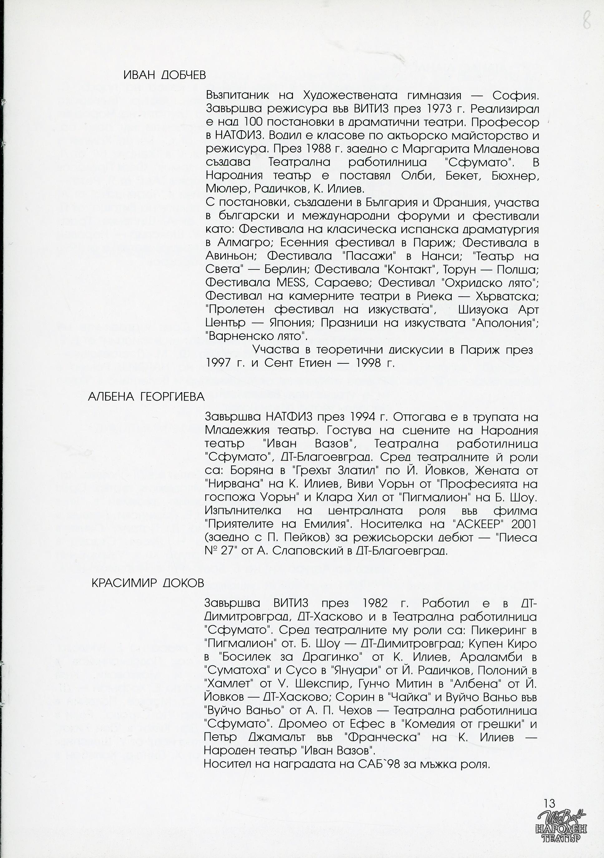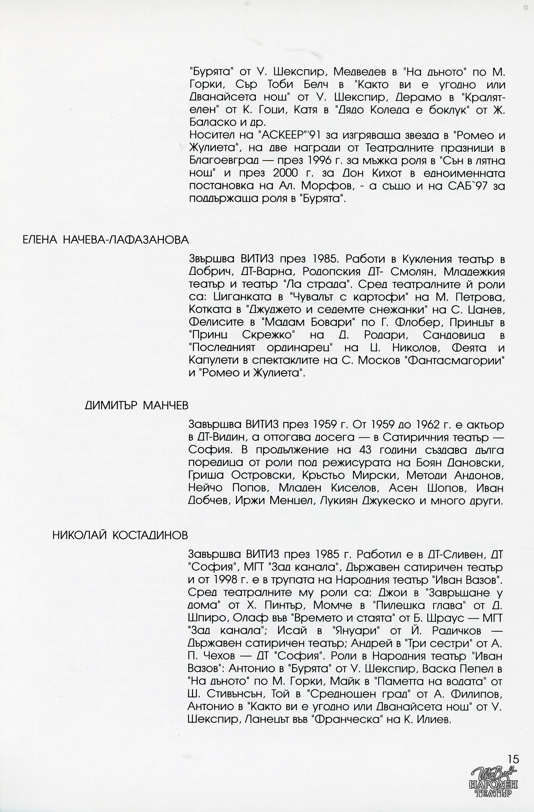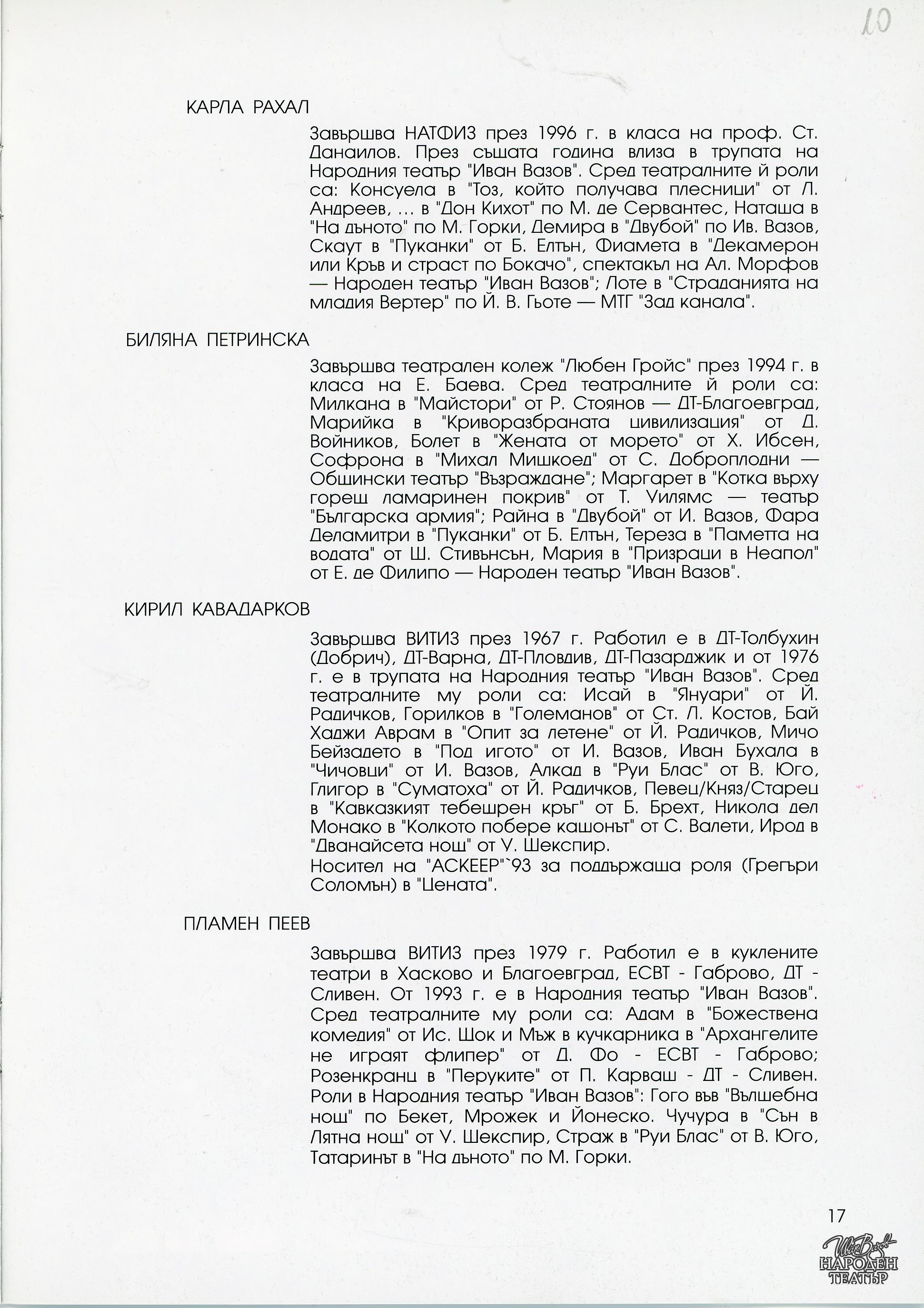 | Институция | Народен театър „Иван Вазов“, гр. София, България |