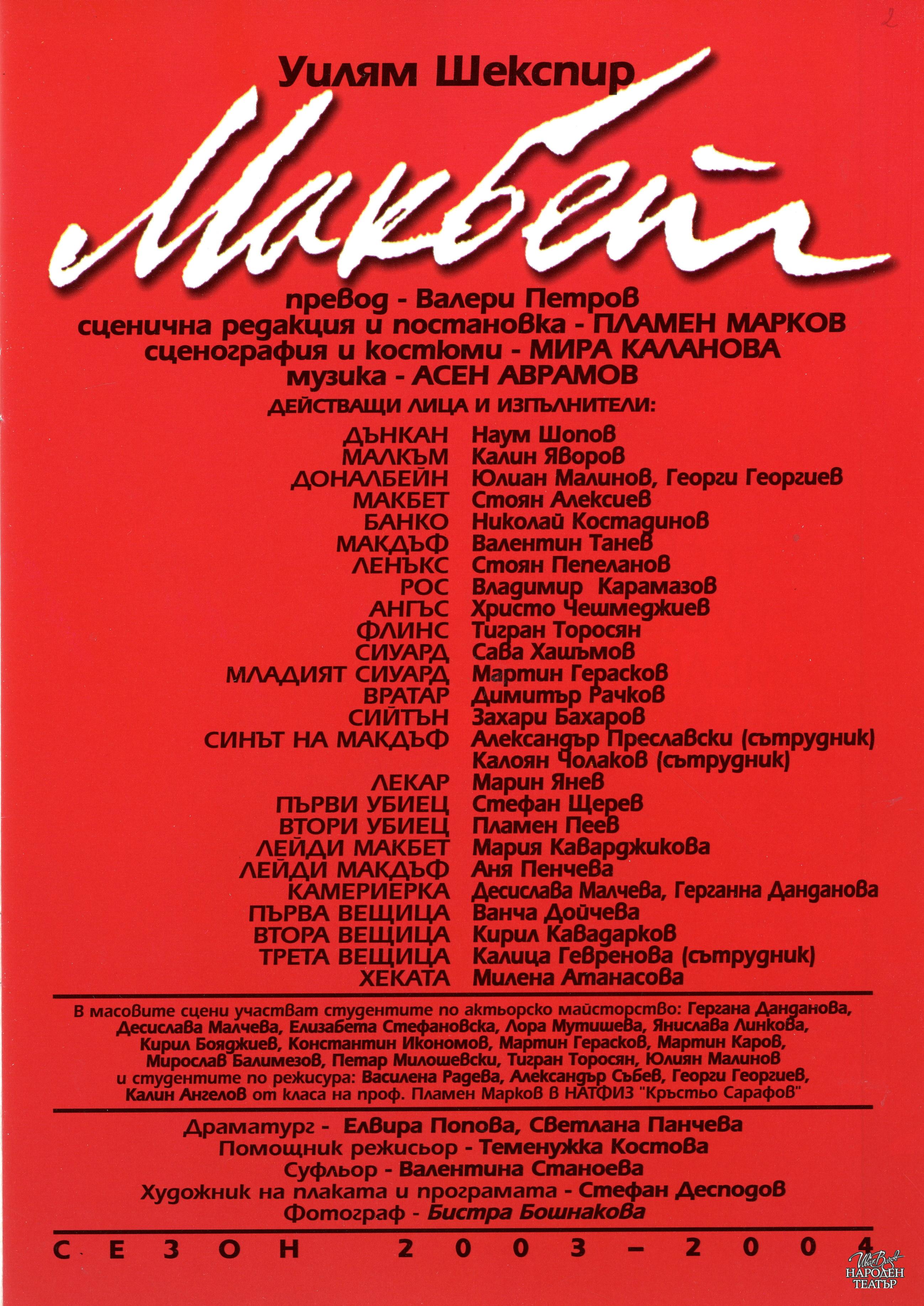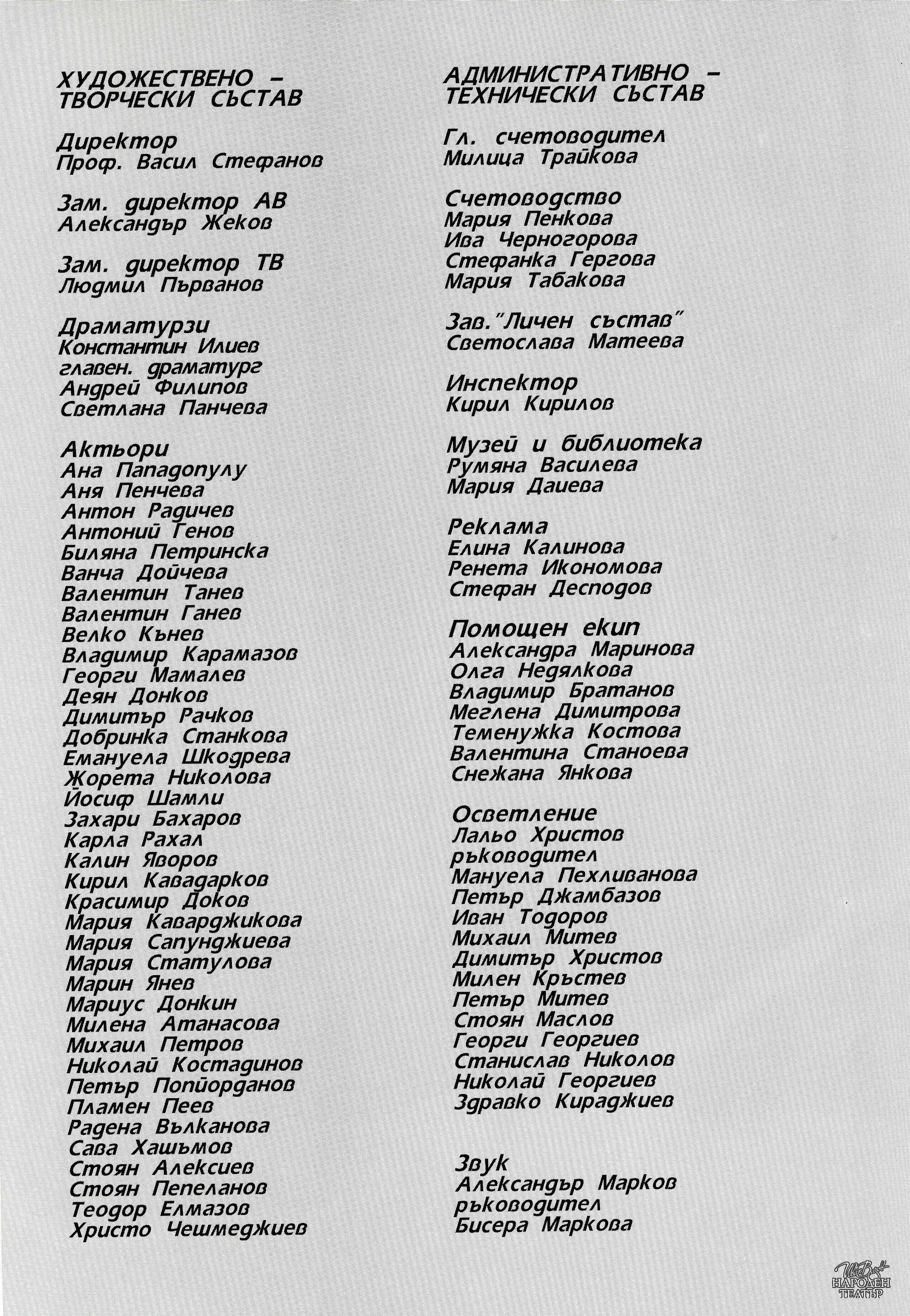| Институция | Народен театър „Иван Вазов“, гр. София, България |
