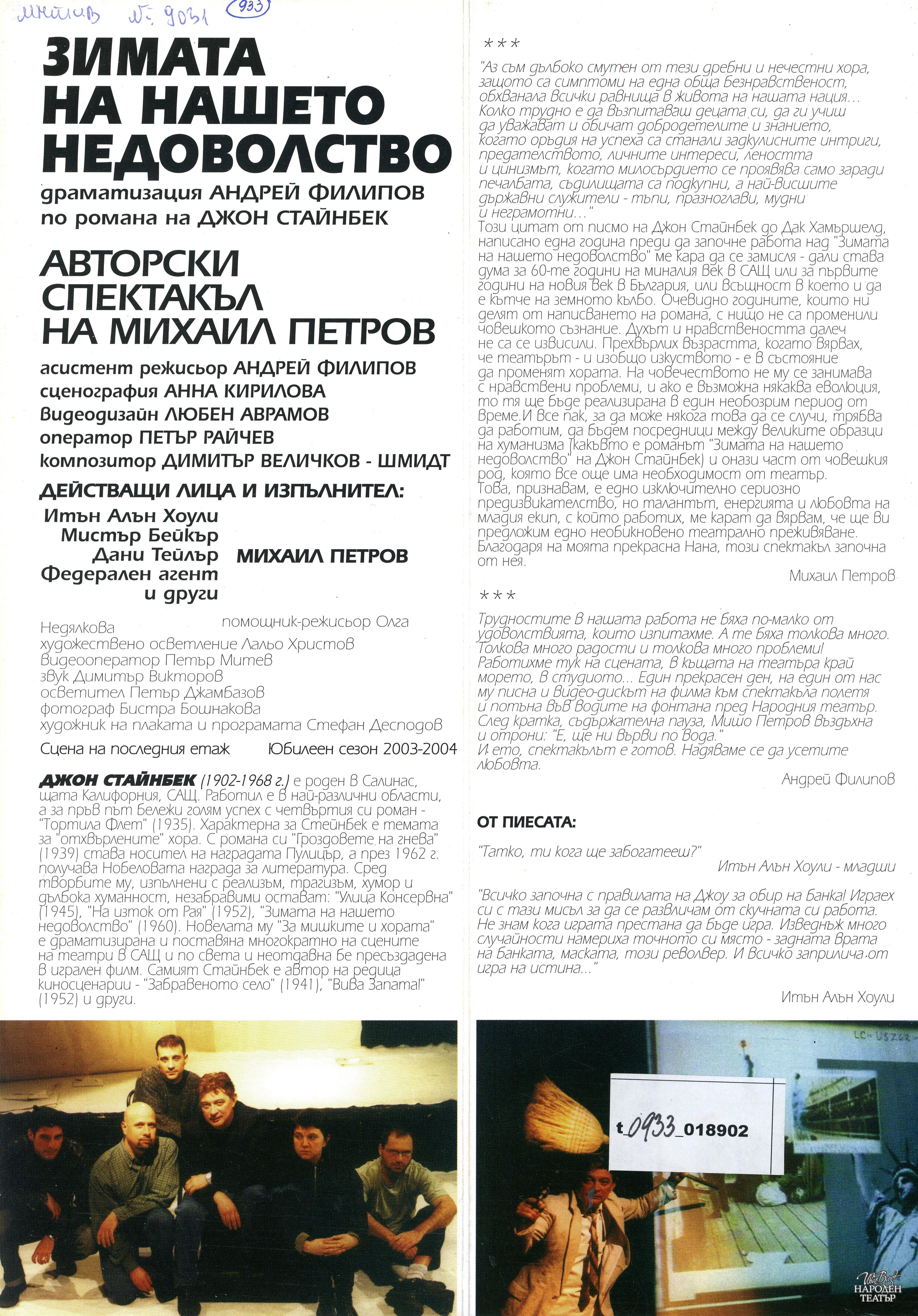 | Институция | Народен театър „Иван Вазов“, гр. София, България |