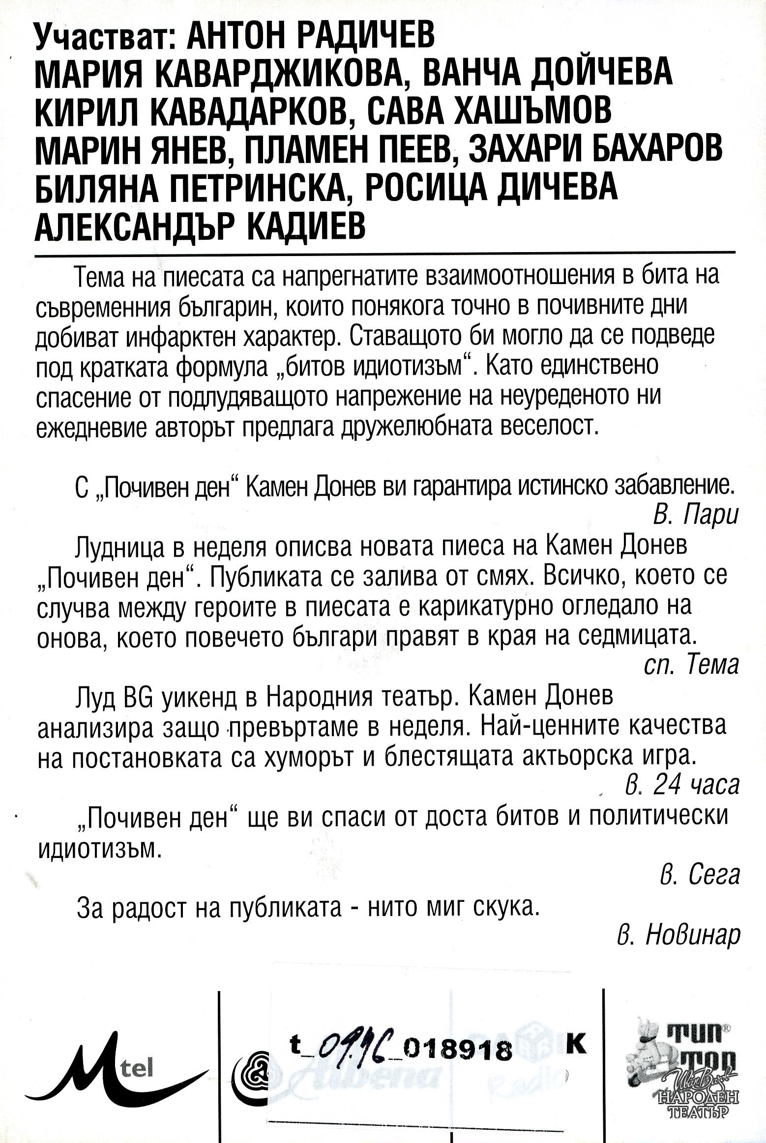 | Институция | Народен театър „Иван Вазов“, гр. София, България |