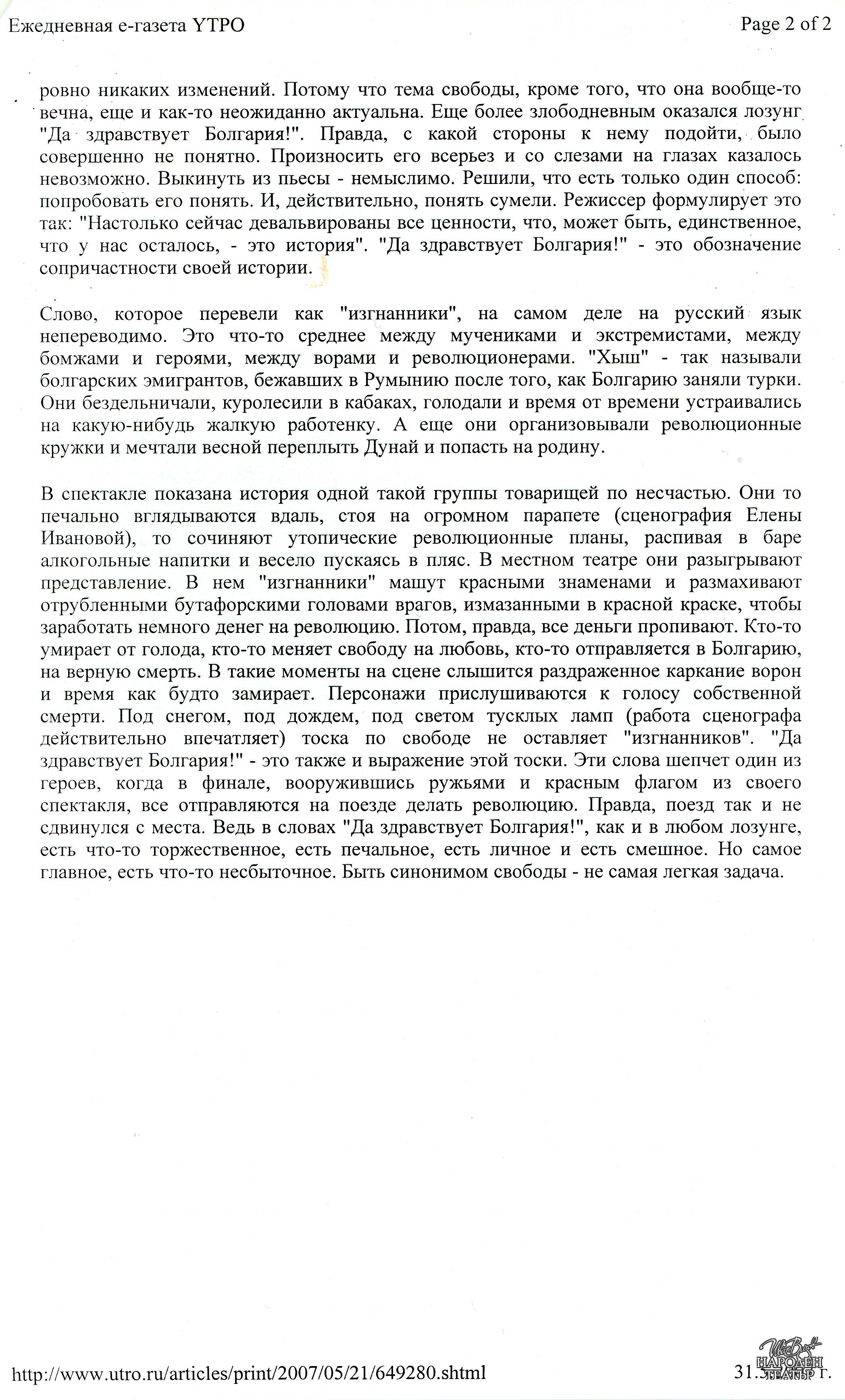 | Източник/ брой, дата, страница | http://www.utro.ru, 21.05.2007 |