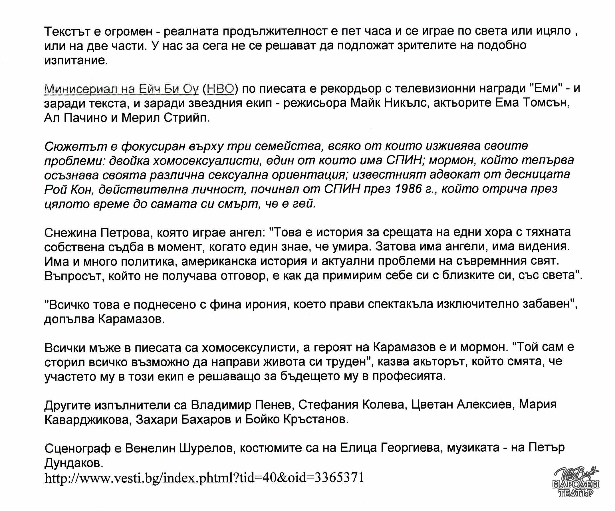 Забележка: За "Ангели в Америка".