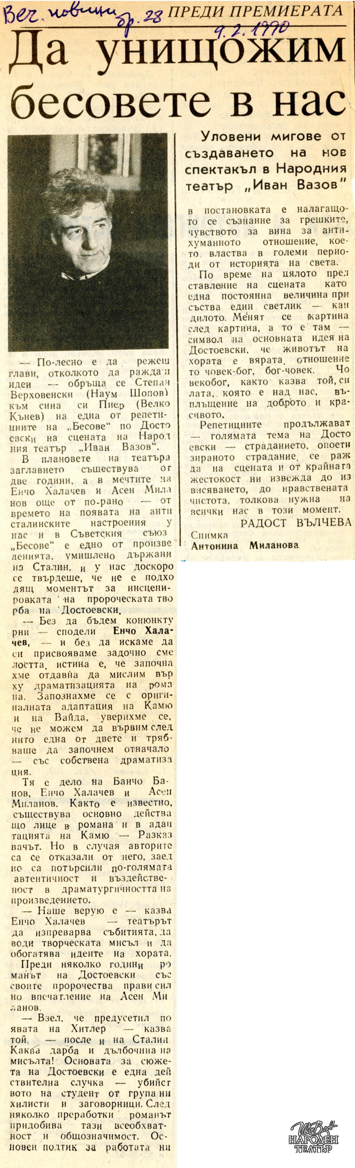 в. Вечерни новини, XL, бр. 28, 09.02.1990 г., с. 1 и 4 |