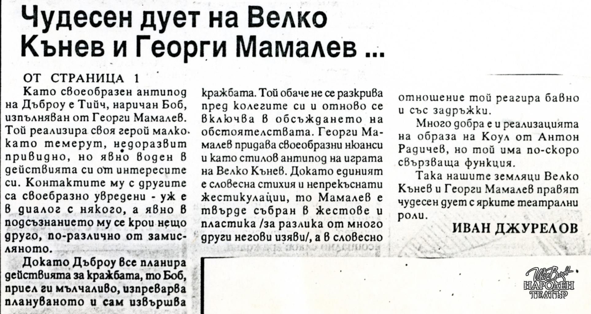 | Институция | Народен театър „Иван Вазов“, гр. София, България |