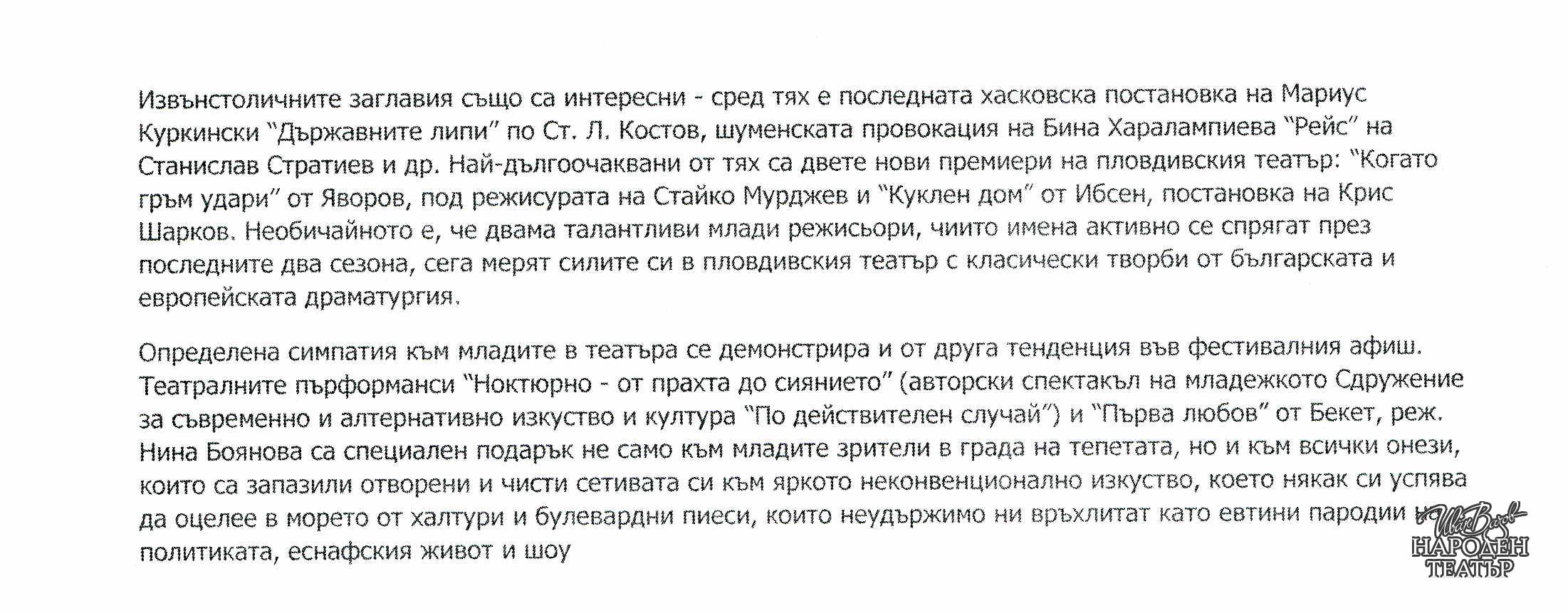 | Институция | Народен театър „Иван Вазов“, гр. София, България |