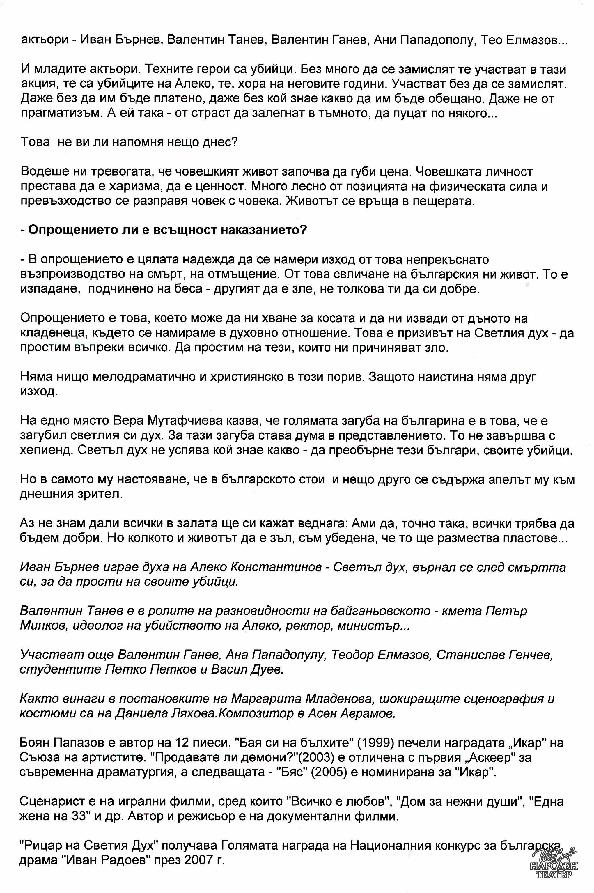 | Институция | Народен театър „Иван Вазов“, гр. София, България |