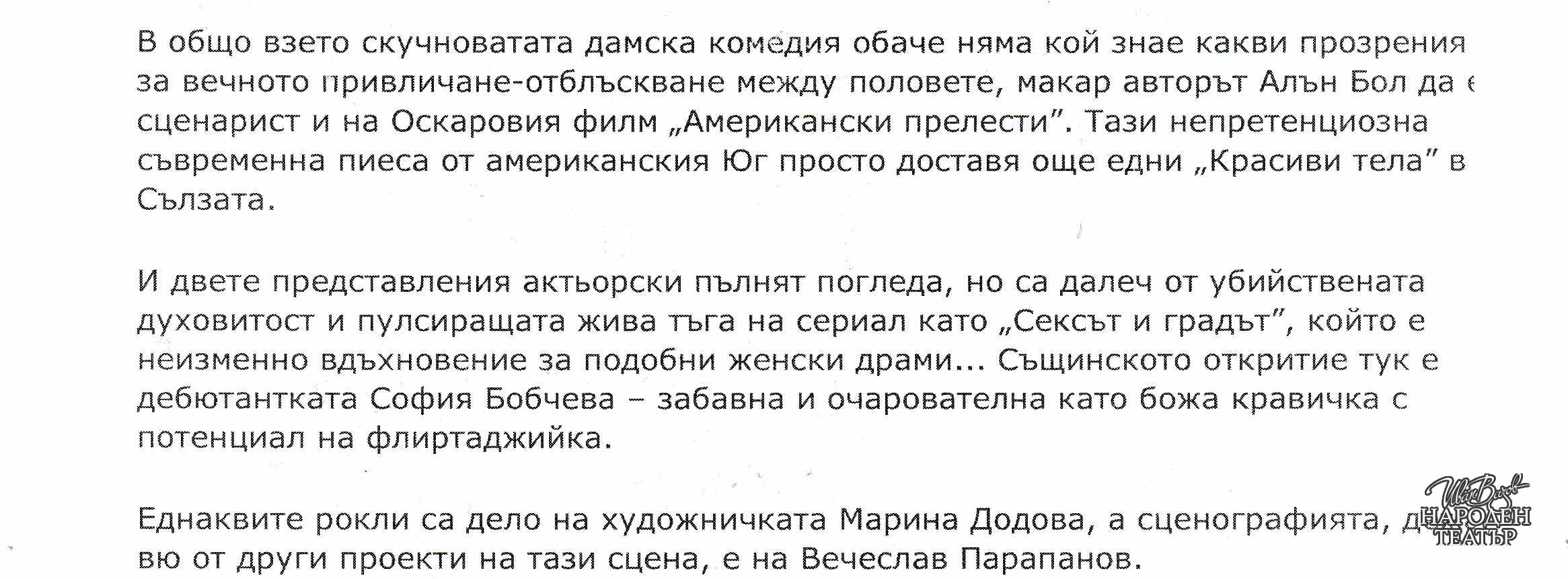 | Институция | Народен театър „Иван Вазов“, гр. София, България |