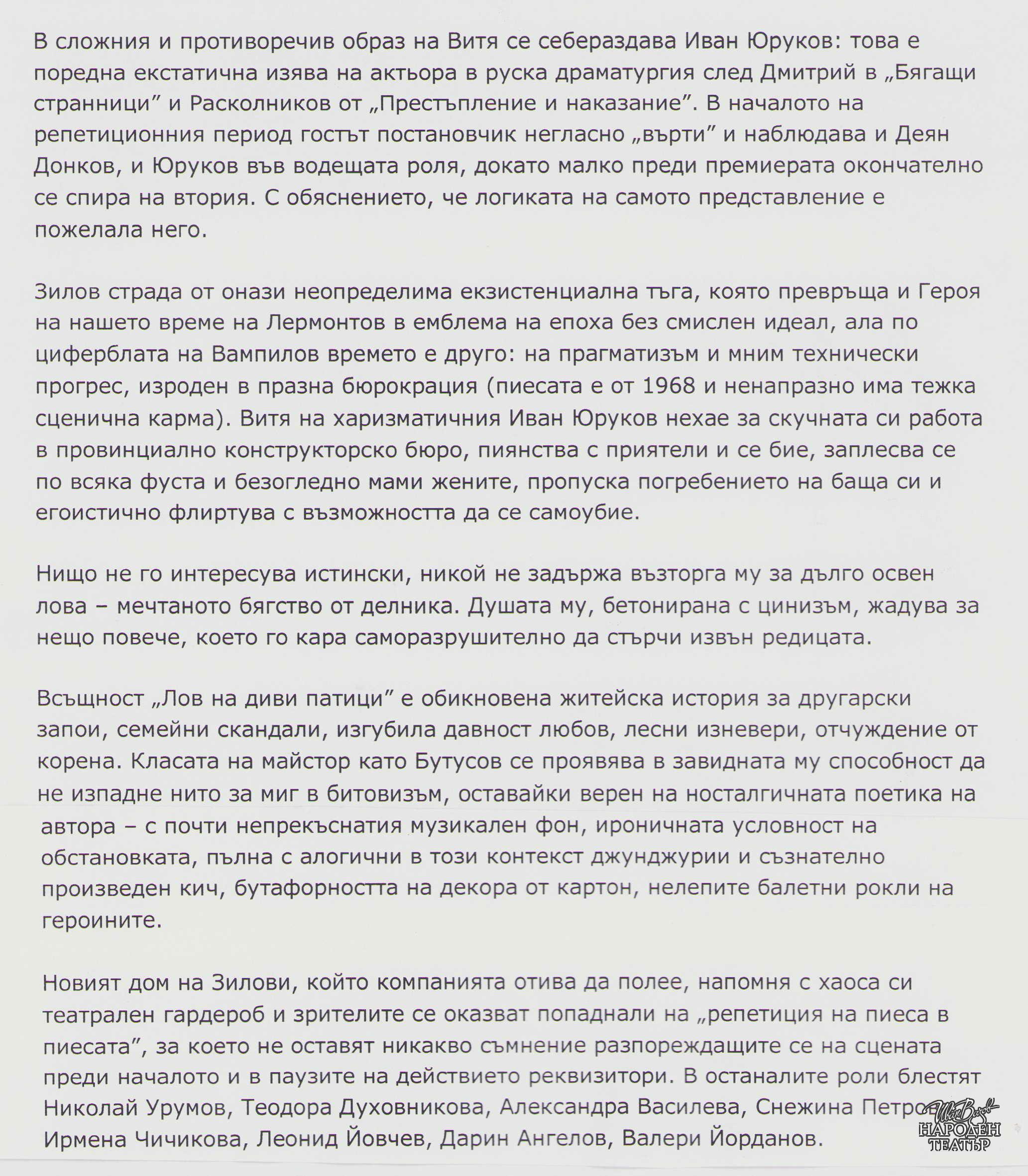 | Институция | Народен театър „Иван Вазов“, гр. София, България |