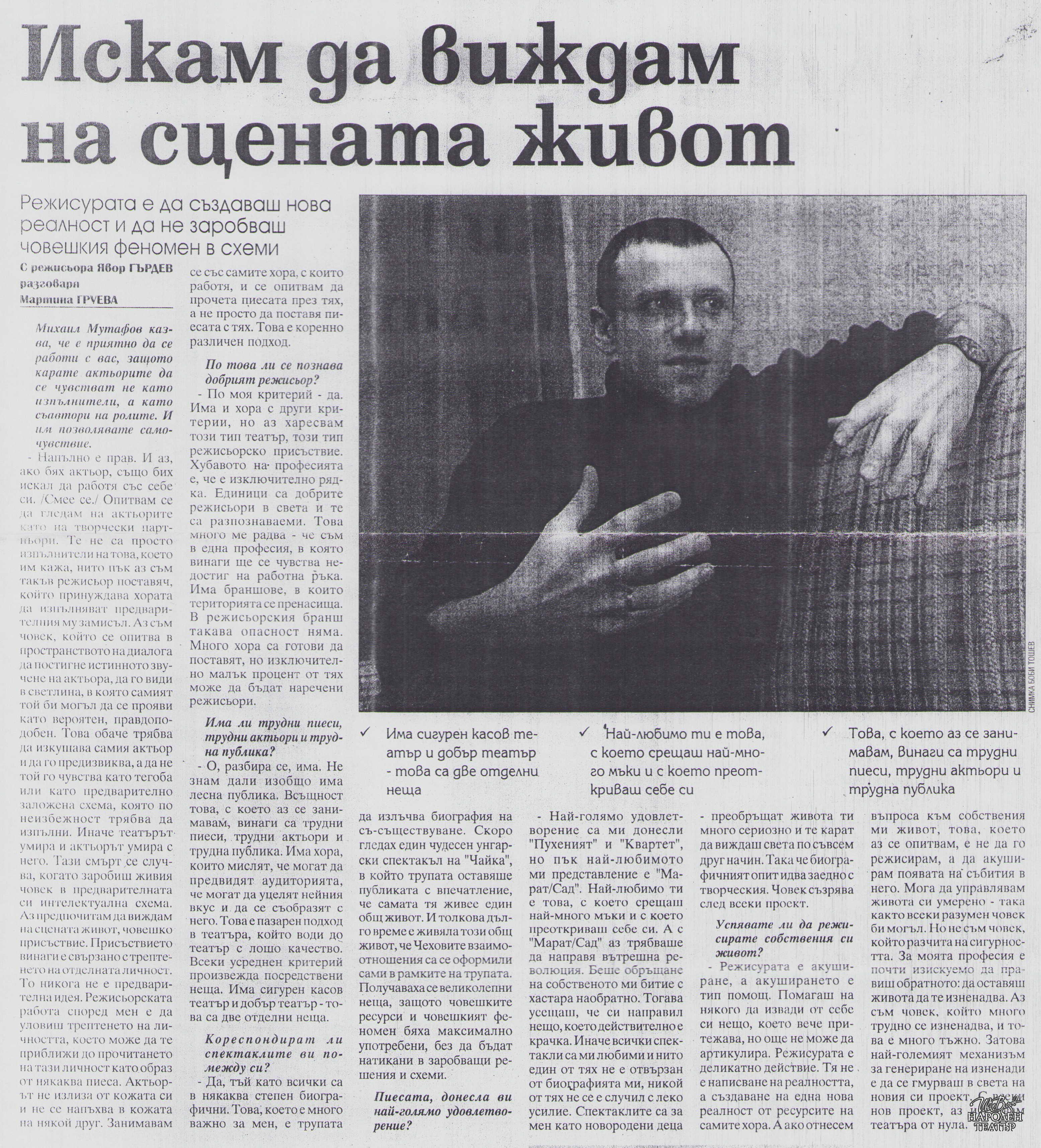 | Източник/ брой, дата, страница | в. Пари Weekend, бр. 9, 13.01.2006, с. 1, 32 |