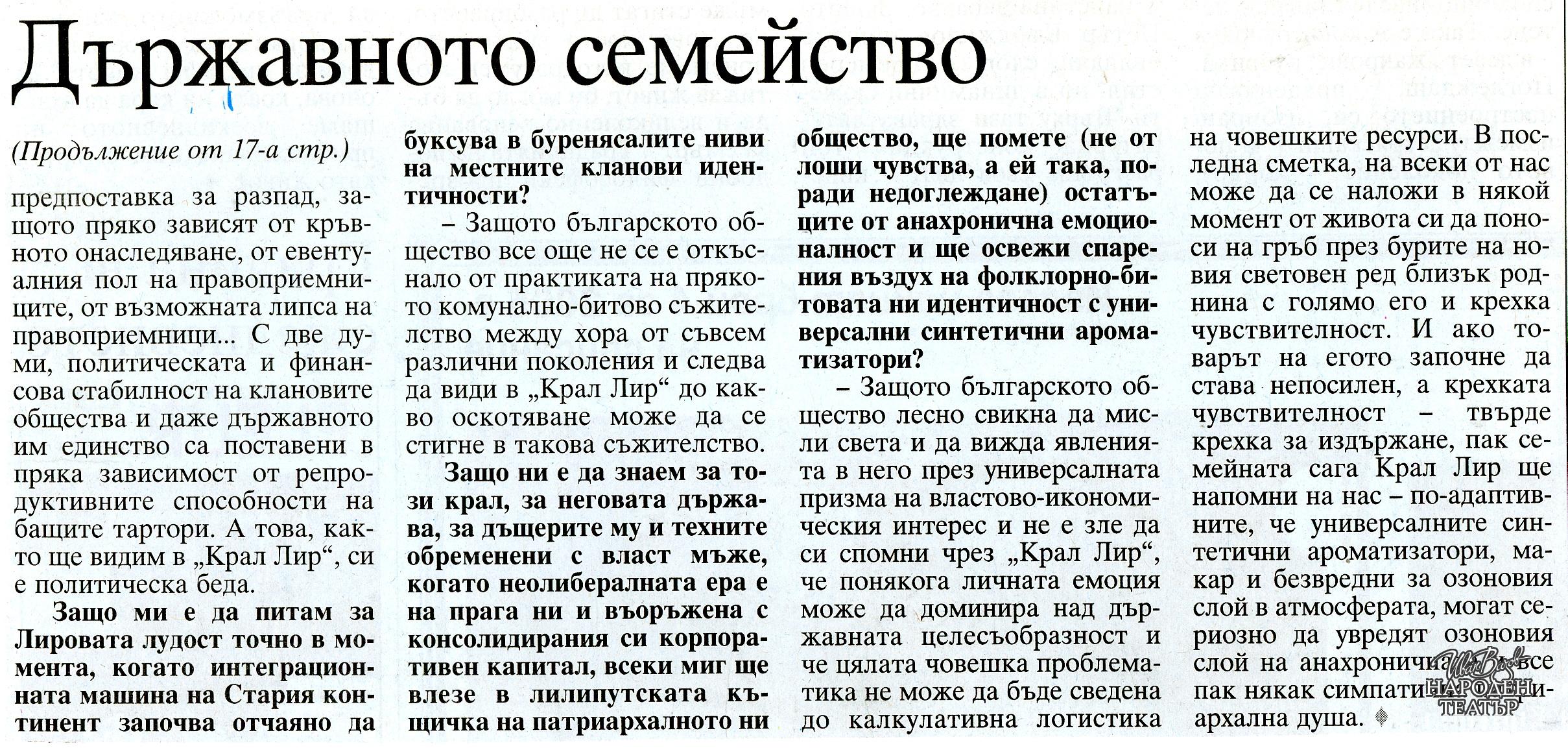 в. Демокрация днес, бр. 13, I, 18.03.2006, с. 17, 19 |