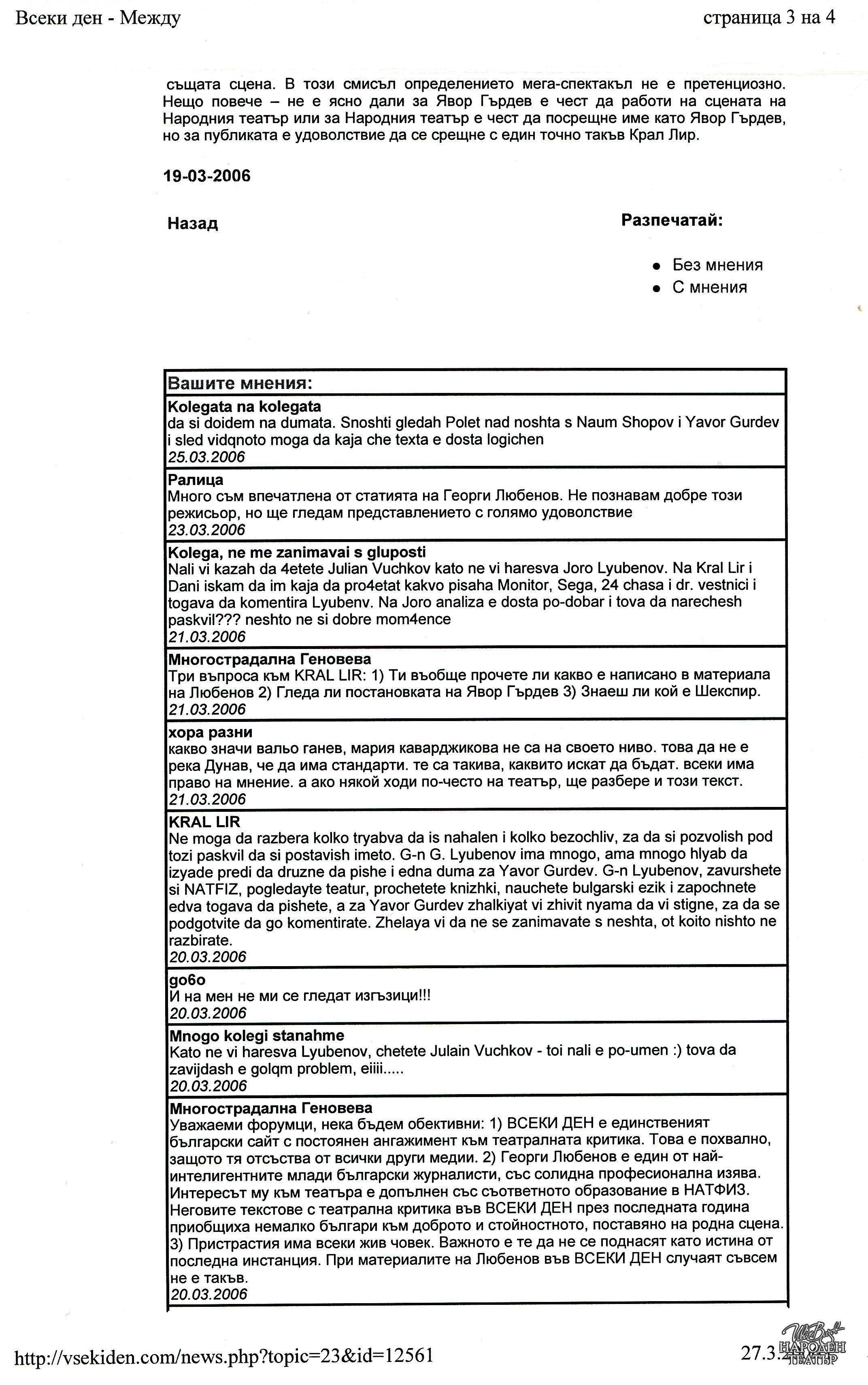 Всеки ден (онлайн издание), http://vsekiden.com/news.php?topic=23&id=12561, 27.03.2006 |