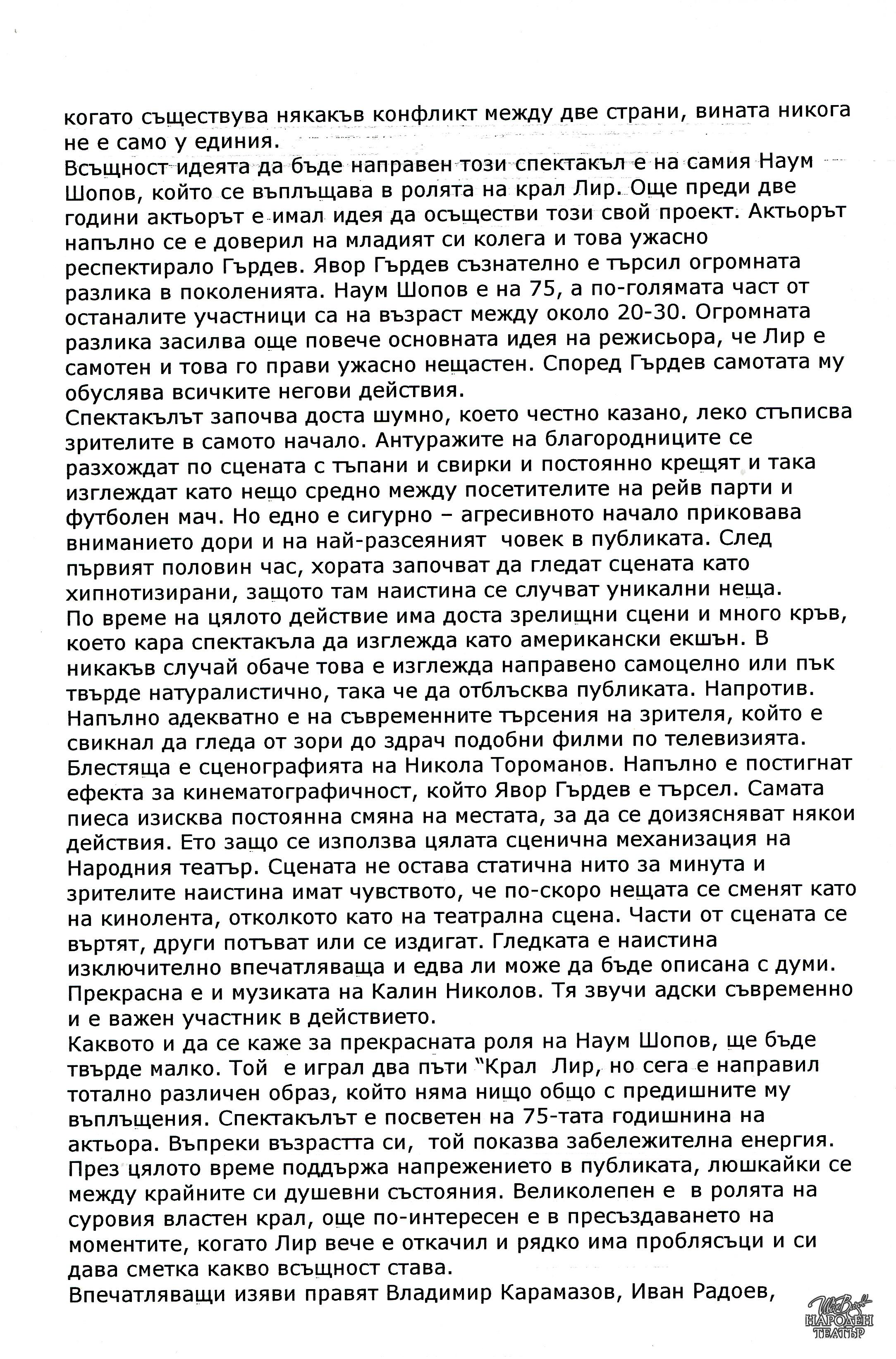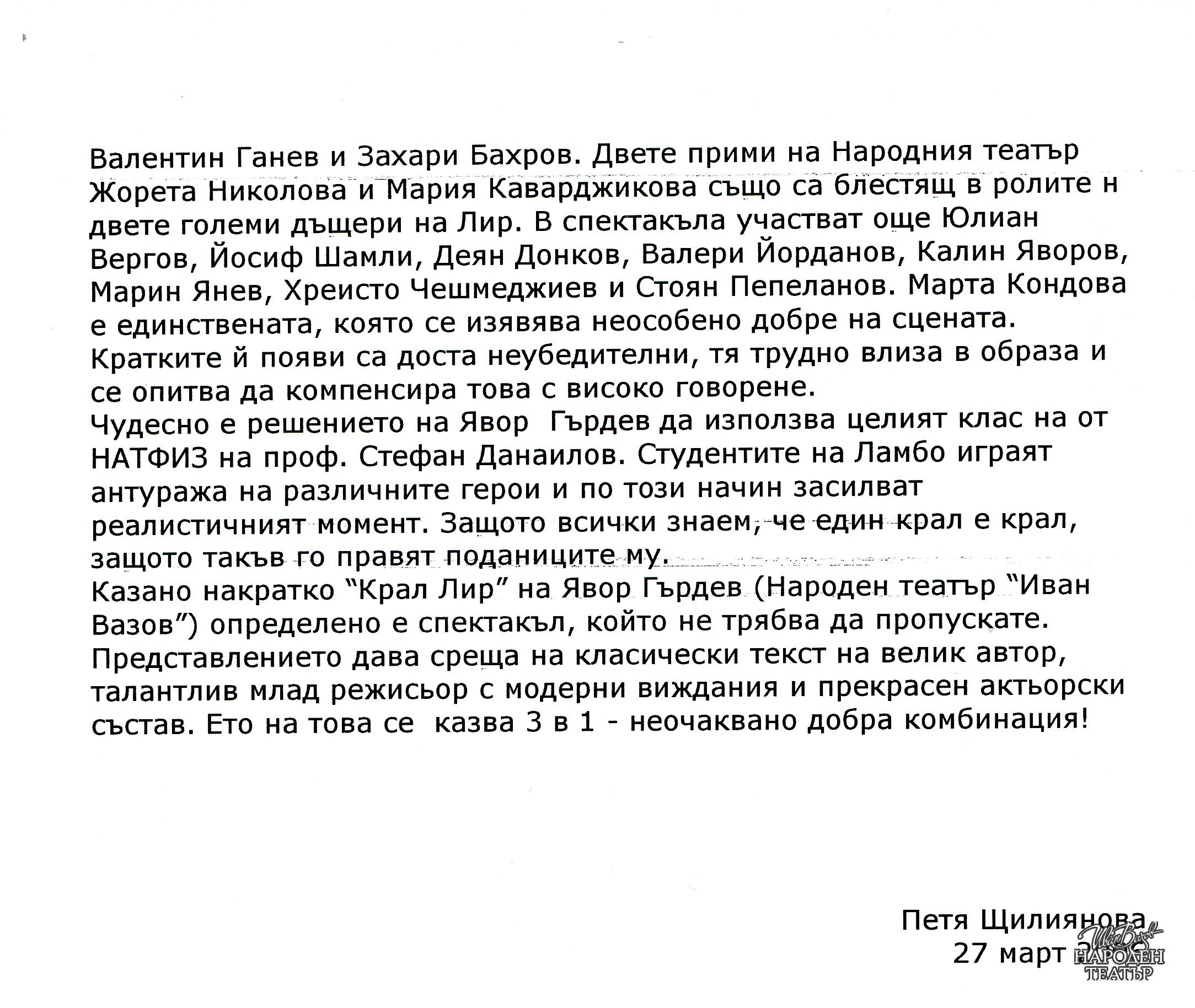 | Институция | Народен театър „Иван Вазов“, гр. София, България |