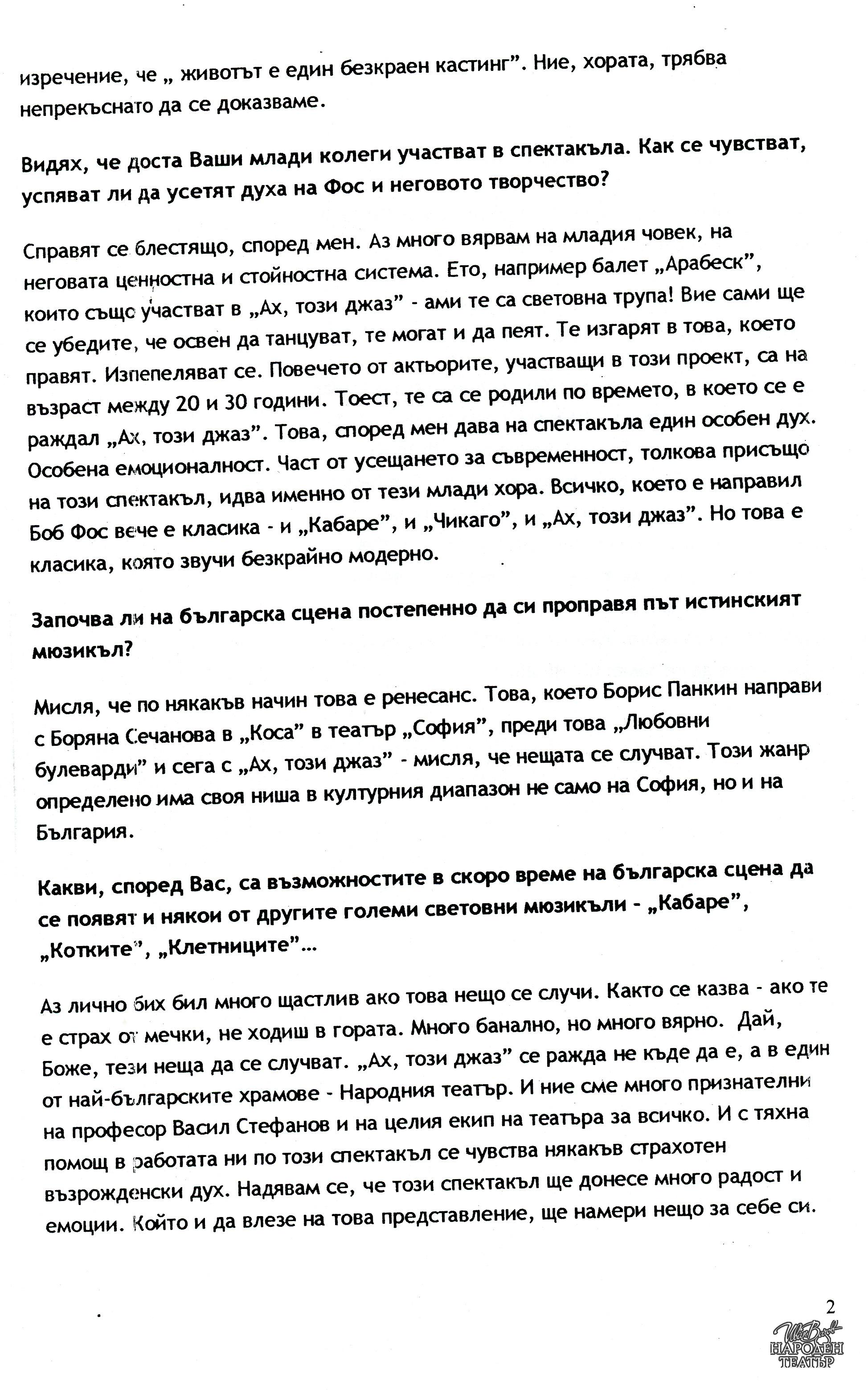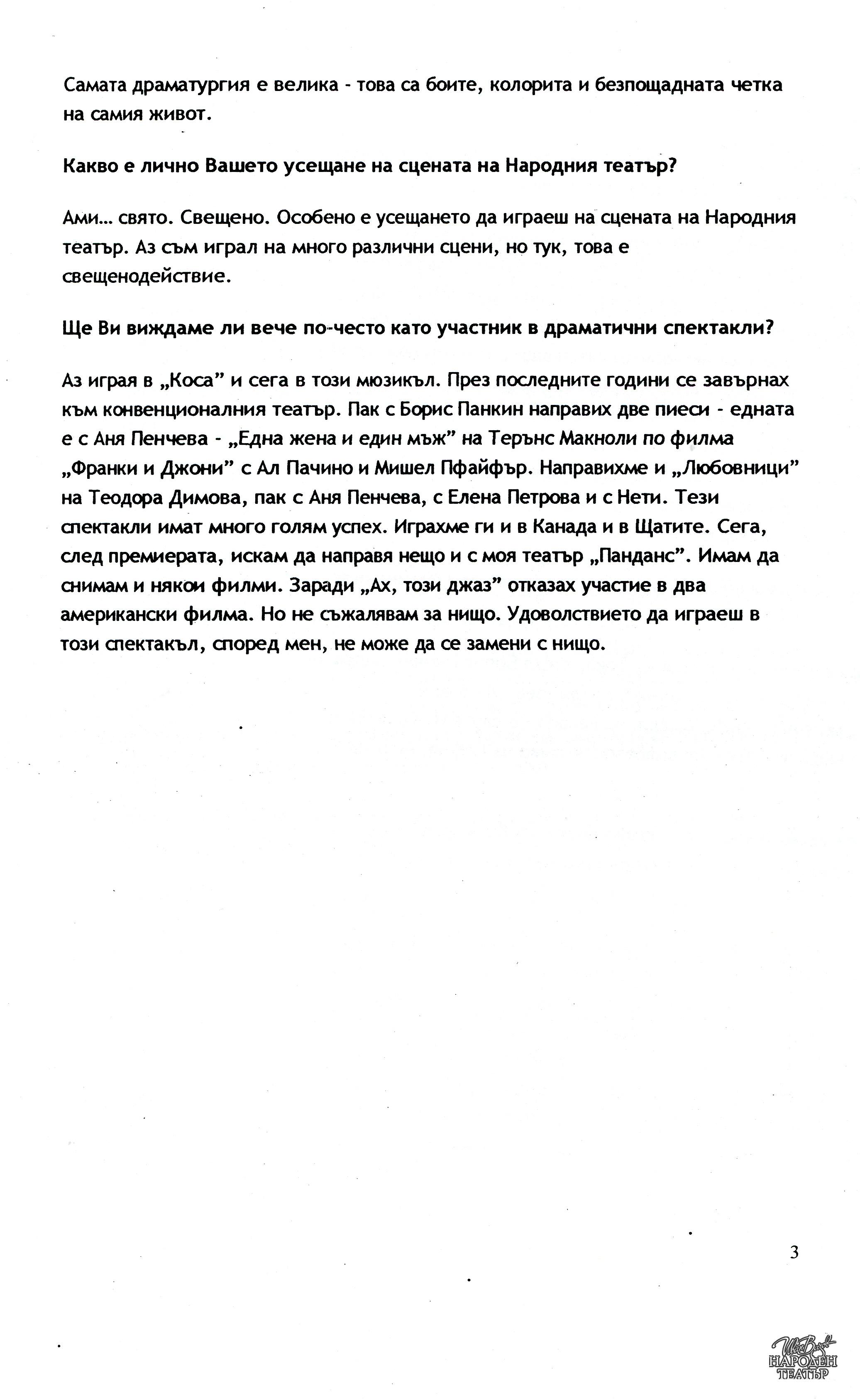 | Институция | Народен театър „Иван Вазов“, гр. София, България |