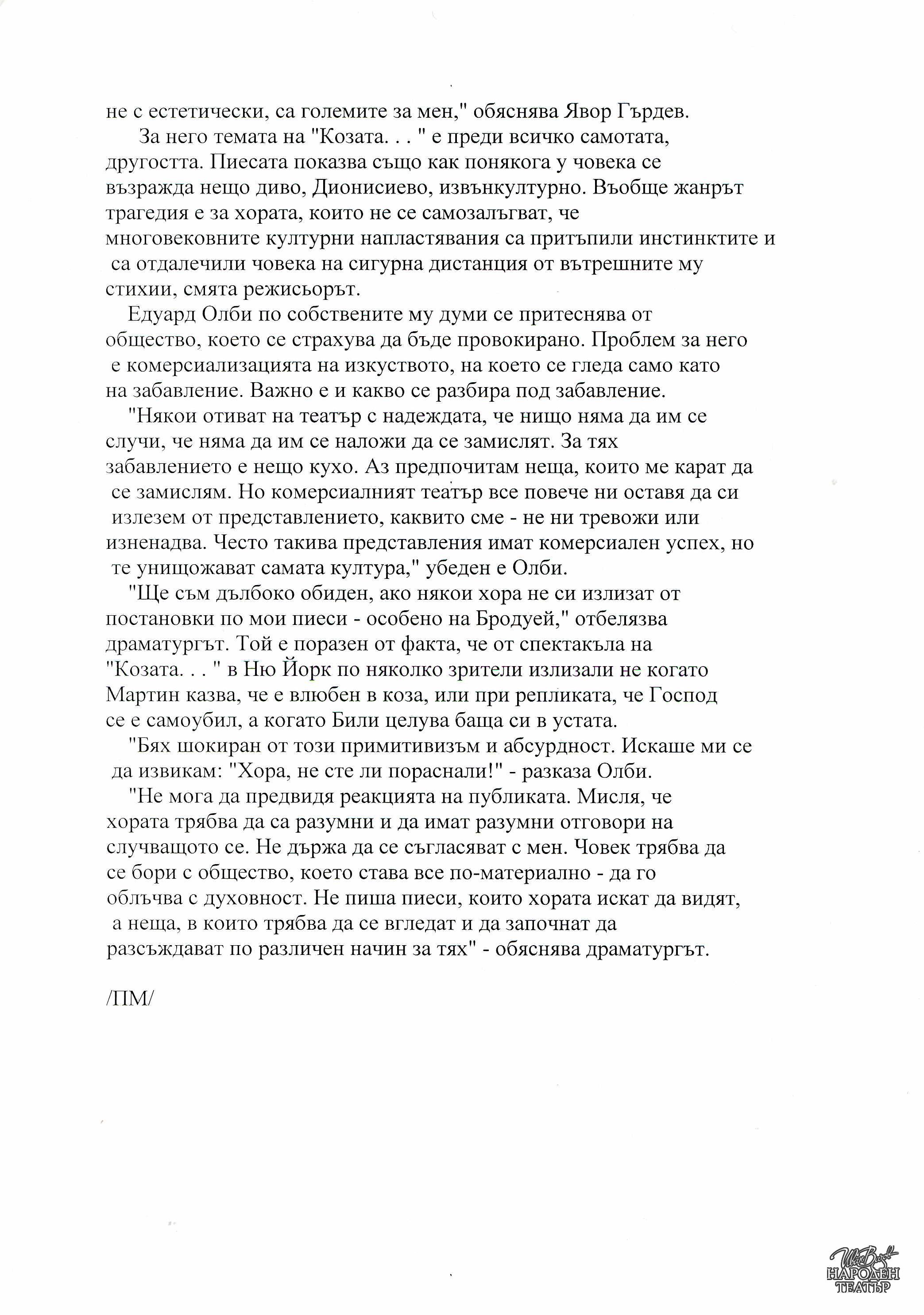 | Институция | Народен театър „Иван Вазов“, гр. София, България |