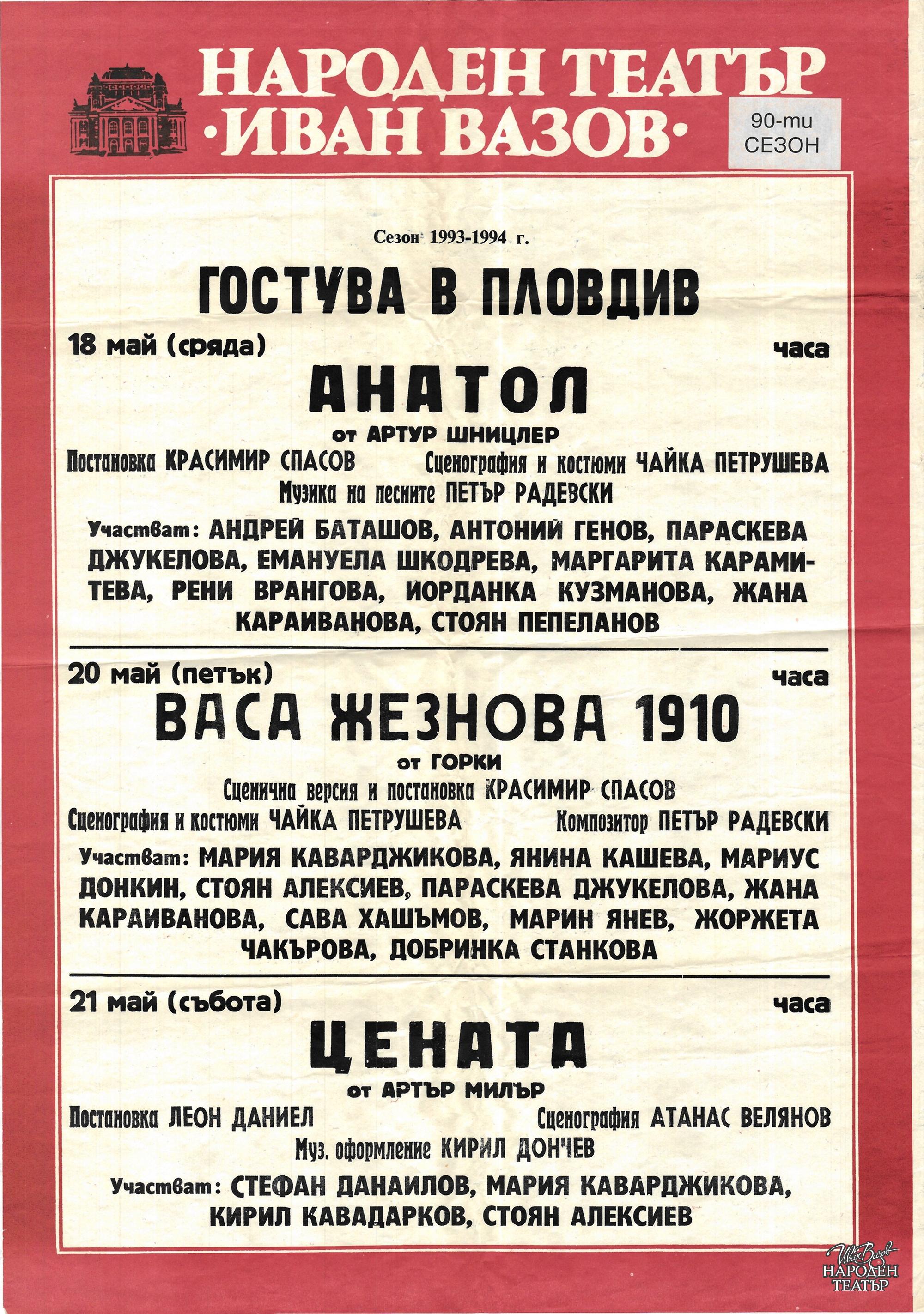 | Институция | Народен театър „Иван Вазов“, гр. София, България |