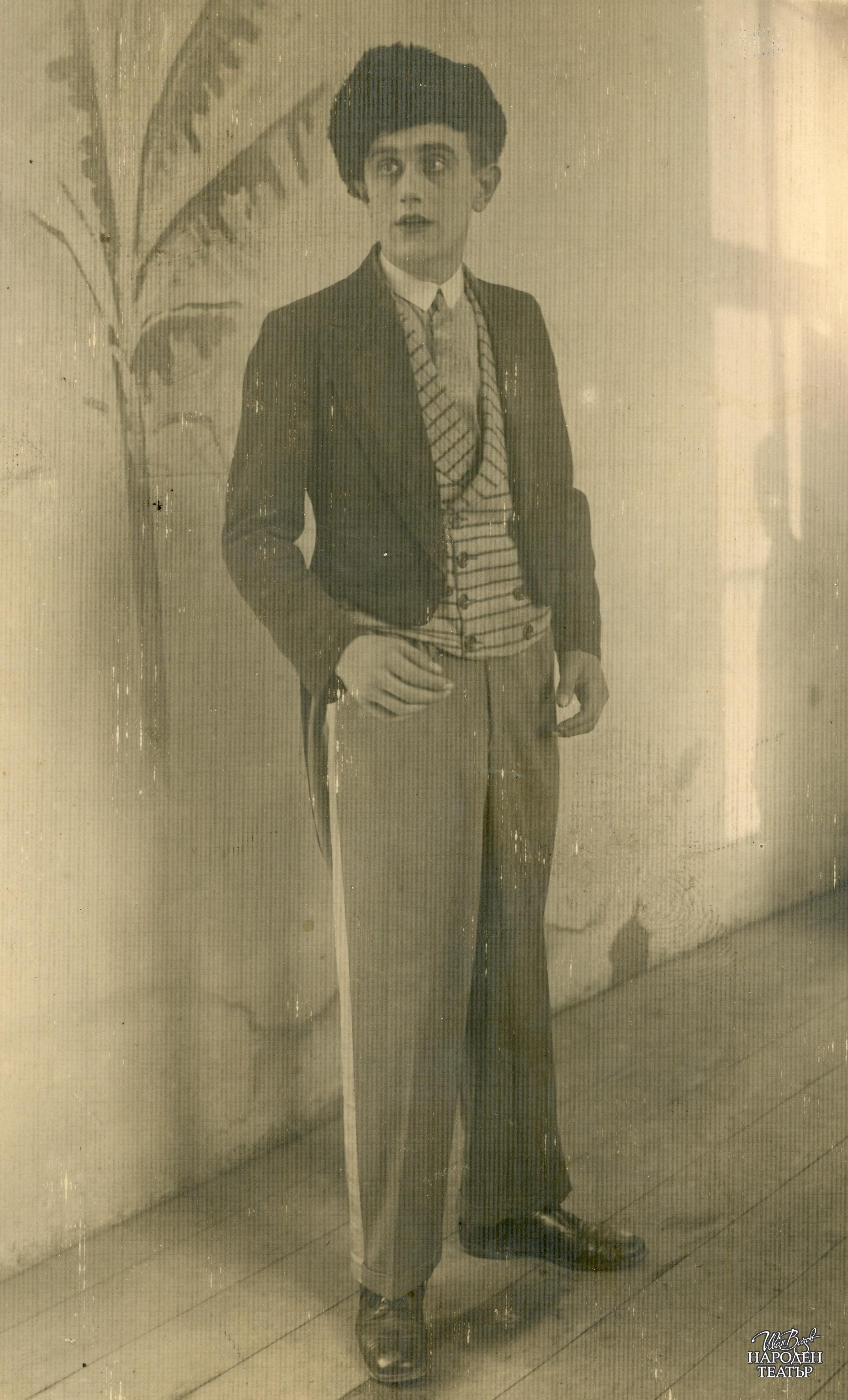 Снимки на Васил Гендов в роли като артист в театър "Роза Попова" и Софийски областен театър: Найден Траянов в "Кръвта на Тьорберг", 1928 г.