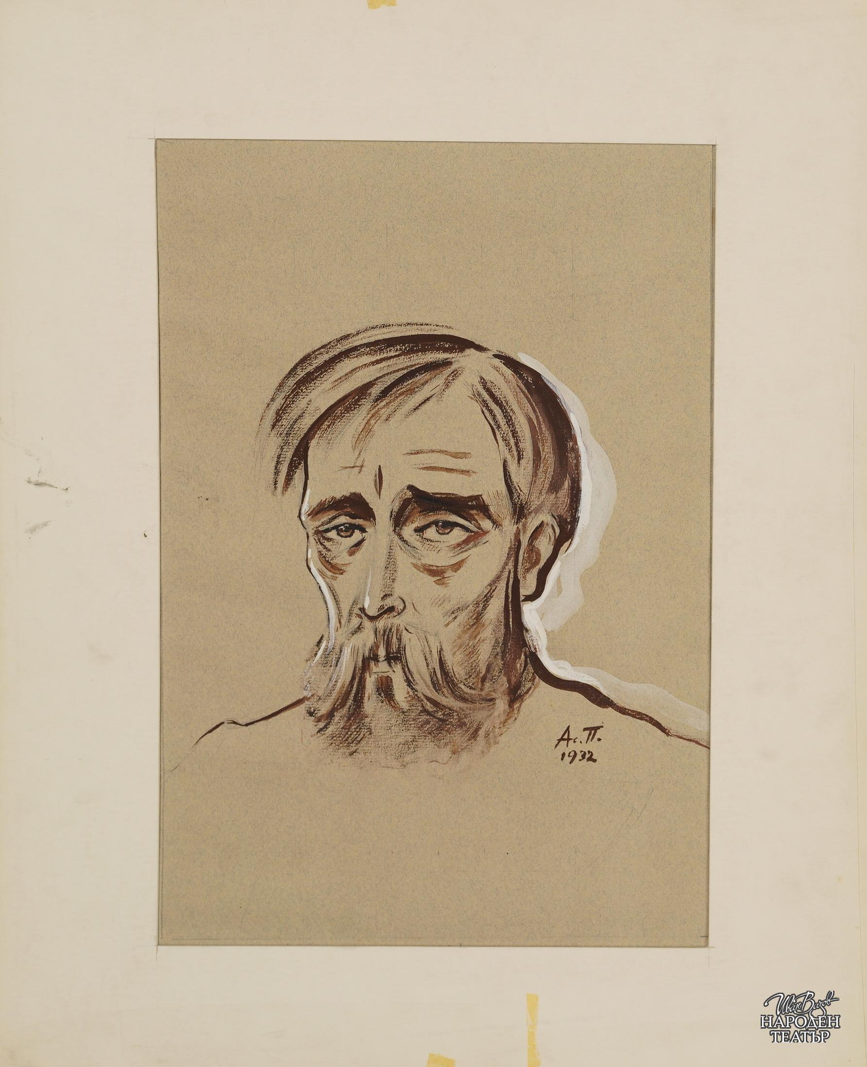 Портретна скица на Константин Кисимов в ролята на Странджата от "Хъшове" от Иван Вазов, пост. Хр. Цанков