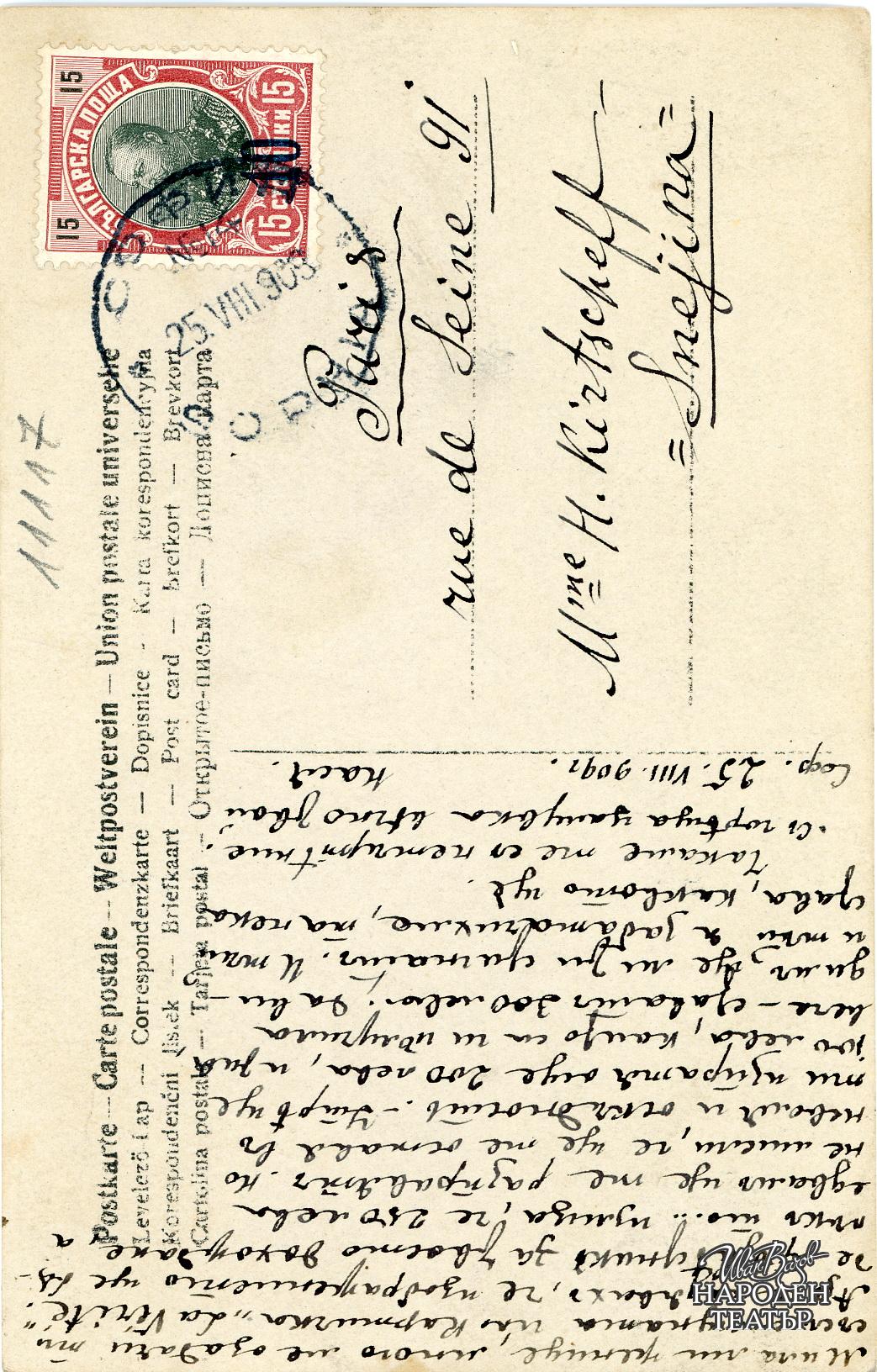 | Забележка: | Адрес на Елена Снежина в Париж. |