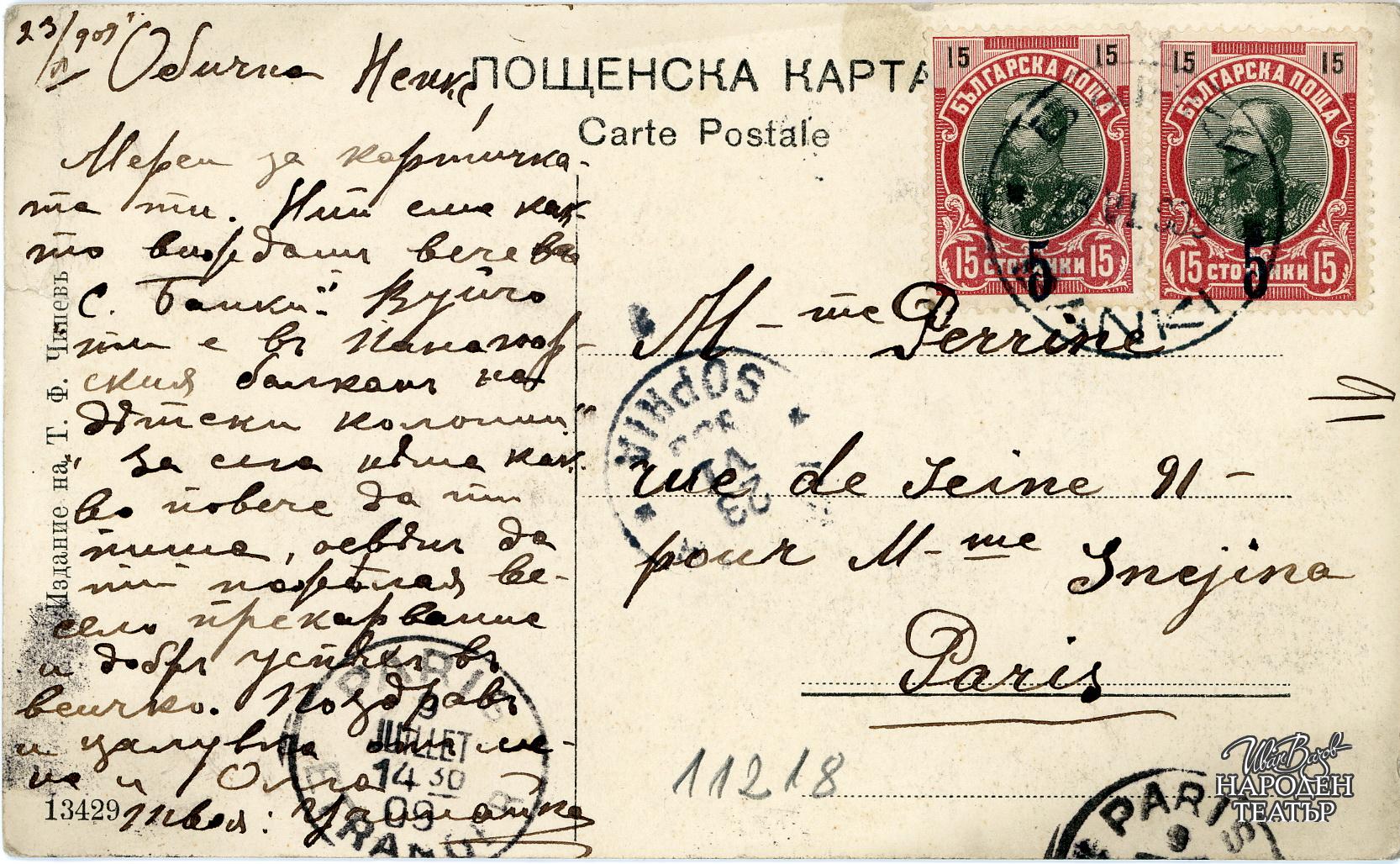 | Забележка: | Адресирана до Елена Снежина в Париж. |