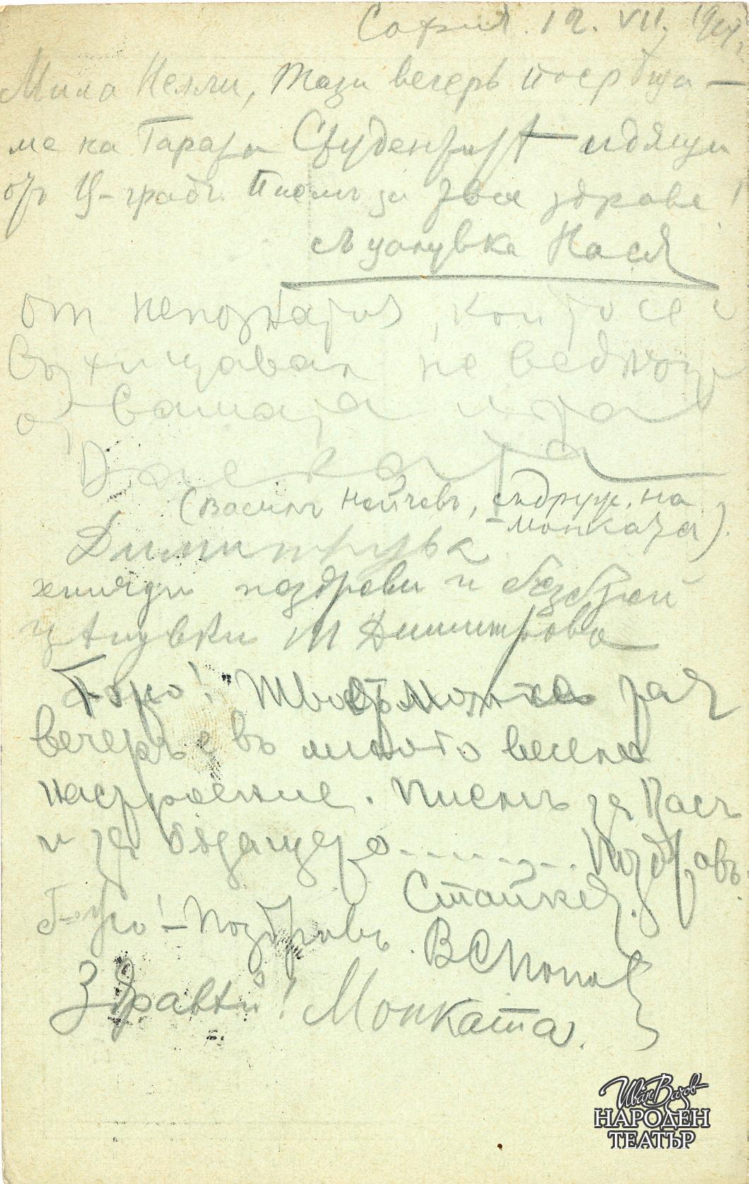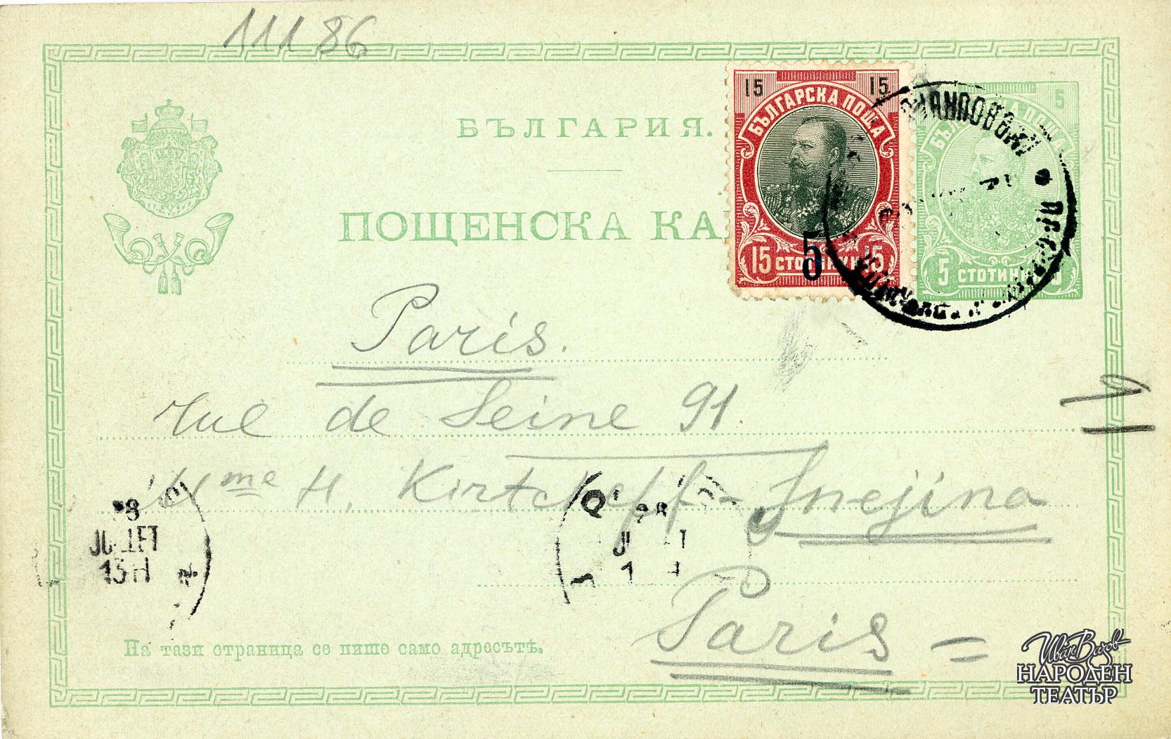 | Забележка: | Адресирана до Елена Снежина в Париж |