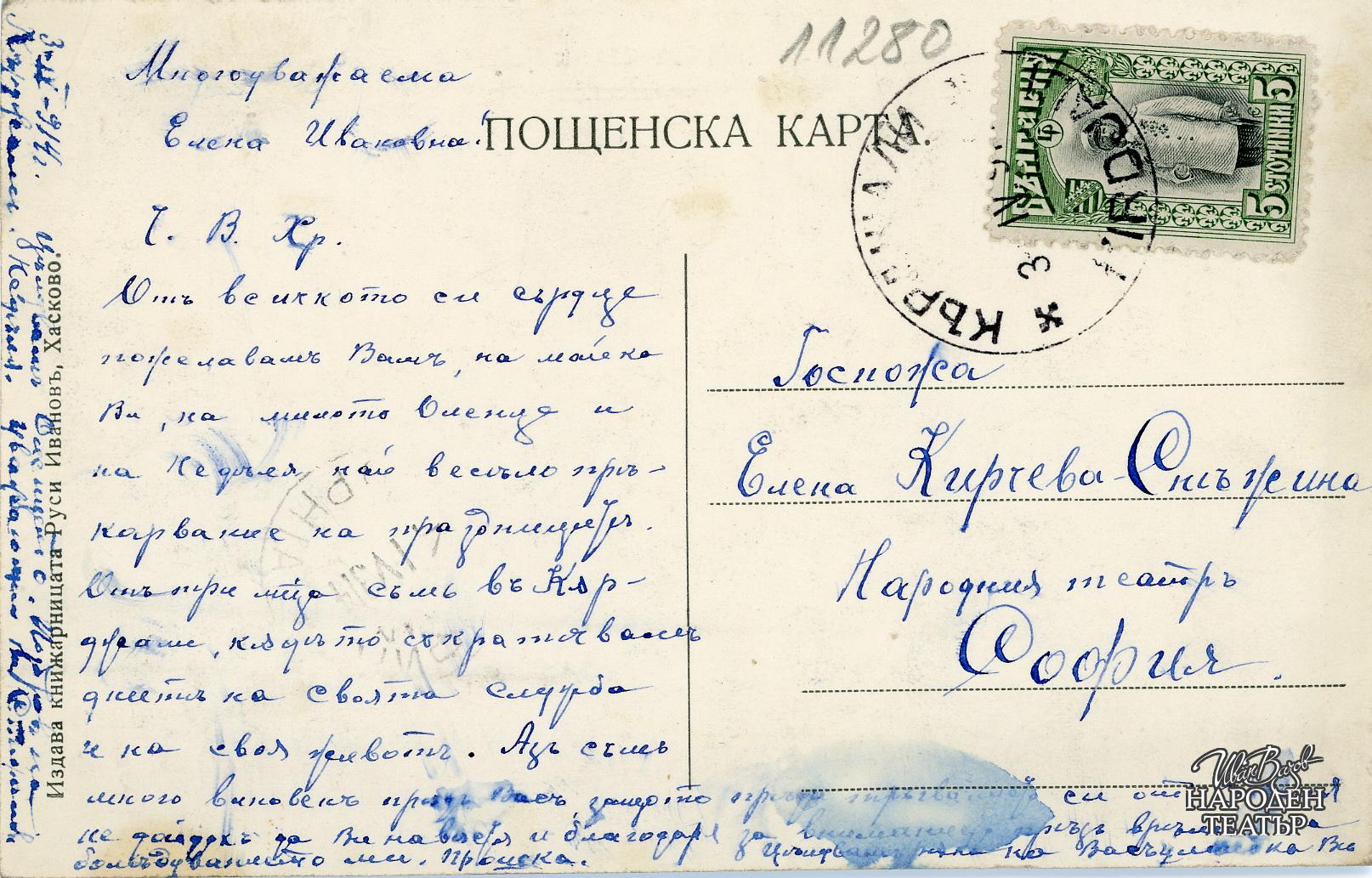 Картичка от Т. Стефанов до Елена Снежина от Кърджали от 30.4.1914