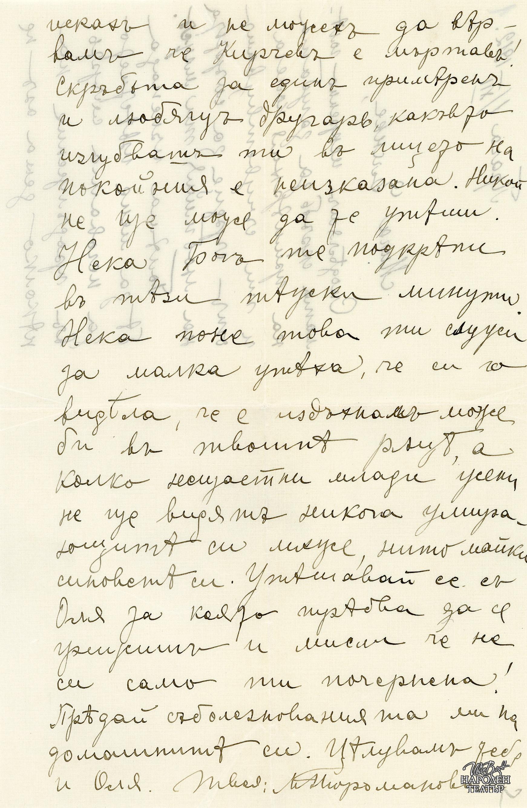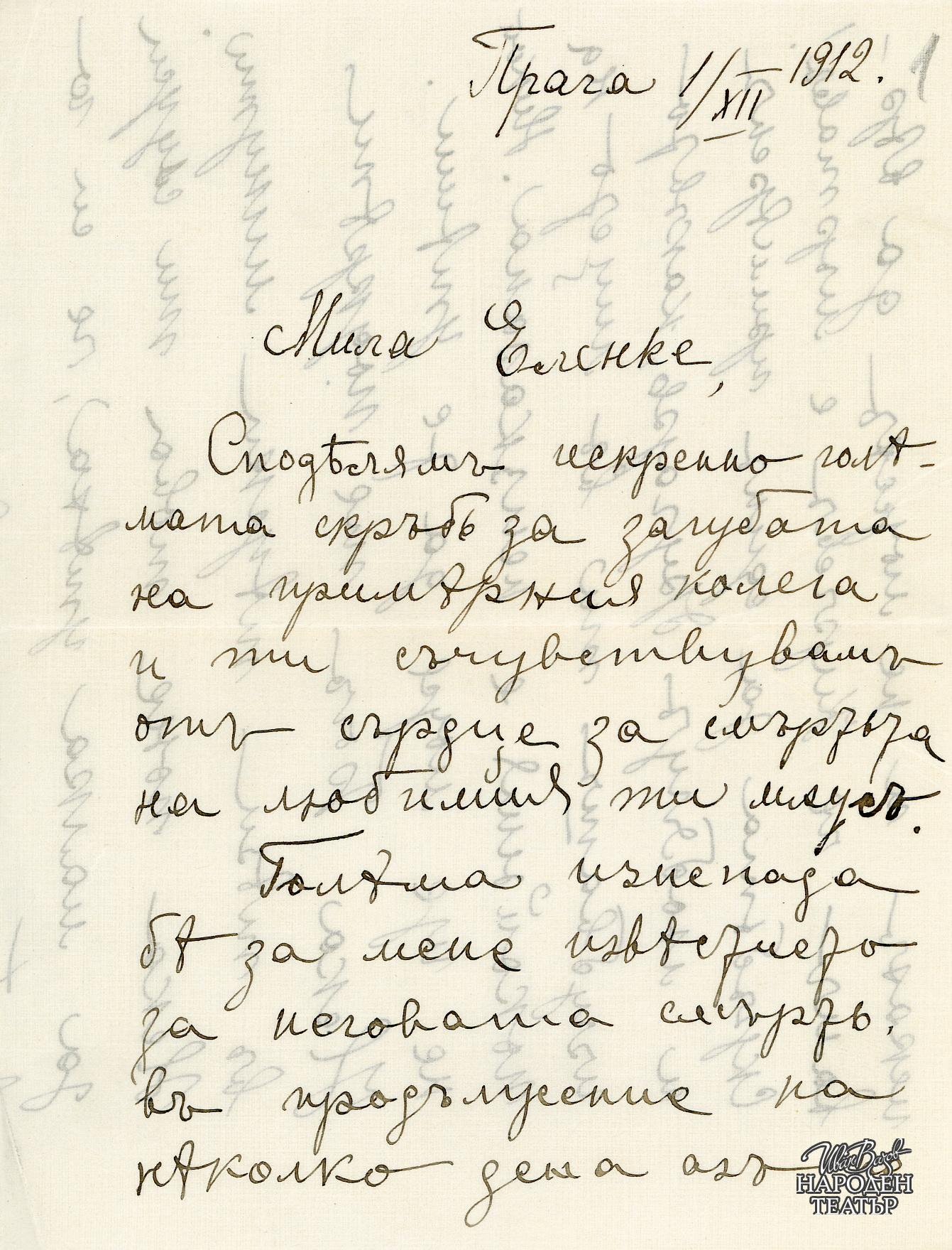 Съболезнователно писмо от Мария Тороманова до Елена Снежина по повод смъртта на Атанас Кирчев от Прага 1.12.1912