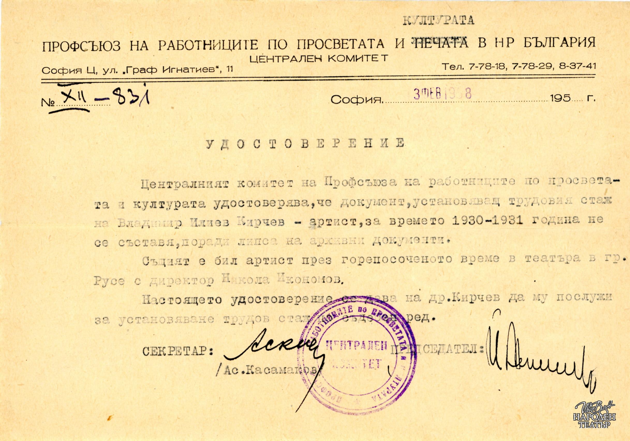 | Институция | Народен театър „Иван Вазов“, гр. София, България |