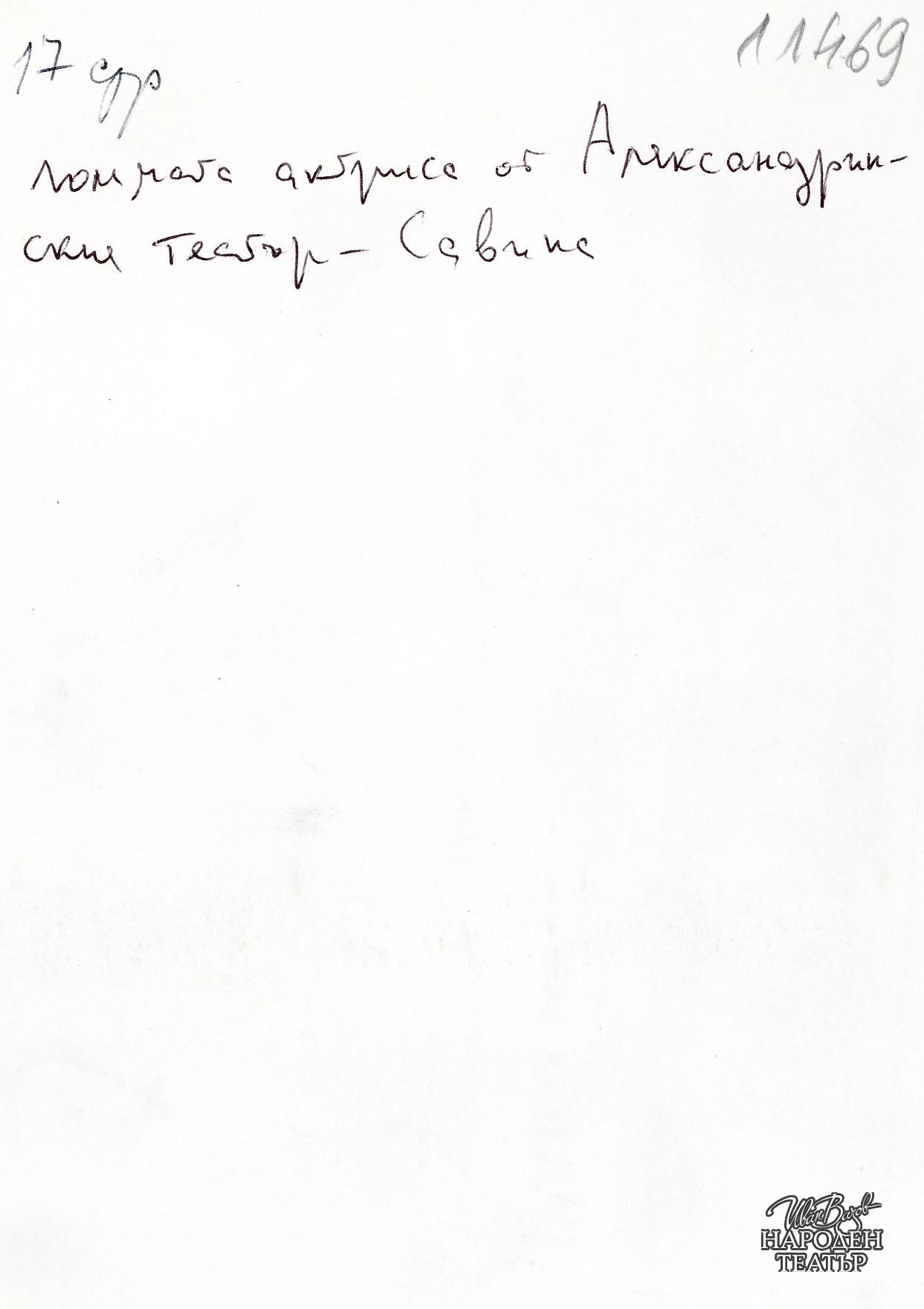 | Забележка: | Надпис на гърба: Голямата актриса от Александринския театър - Савина; копие. |