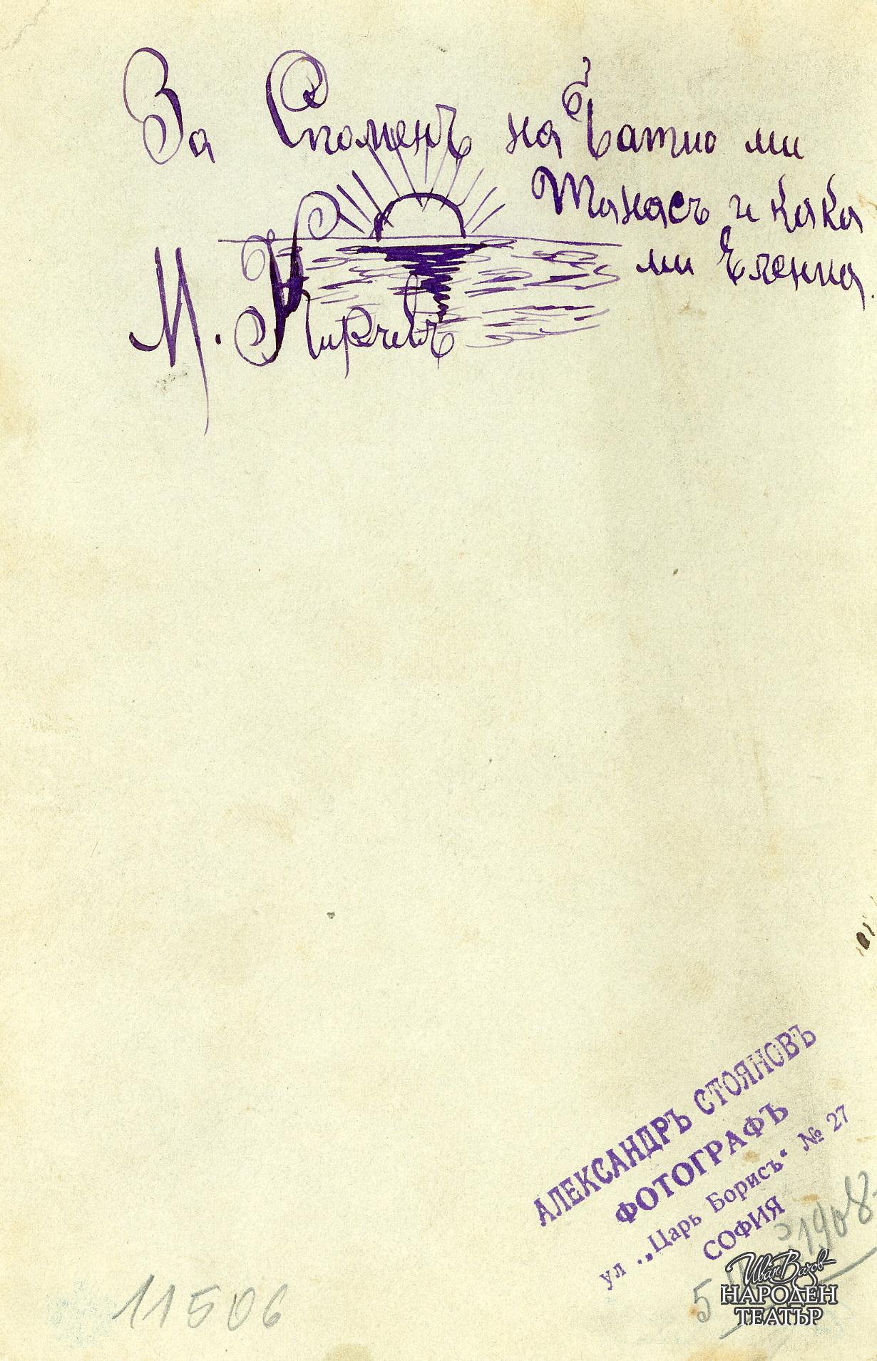 Надпис на гърба: за спомен на батко ми Танас и кака ми Еленка. |
