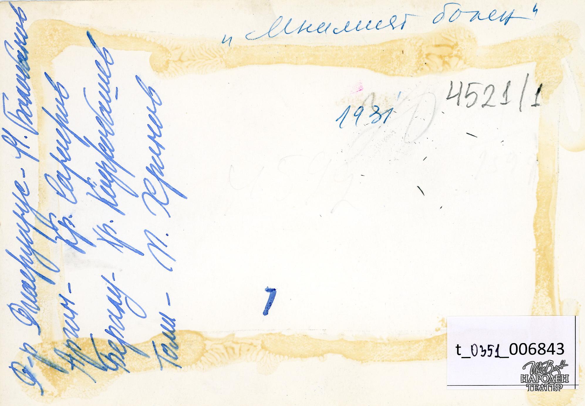 | Права за ползване | Да се цитира източник: „Художествен архив НТ „Иван Вазов“ |