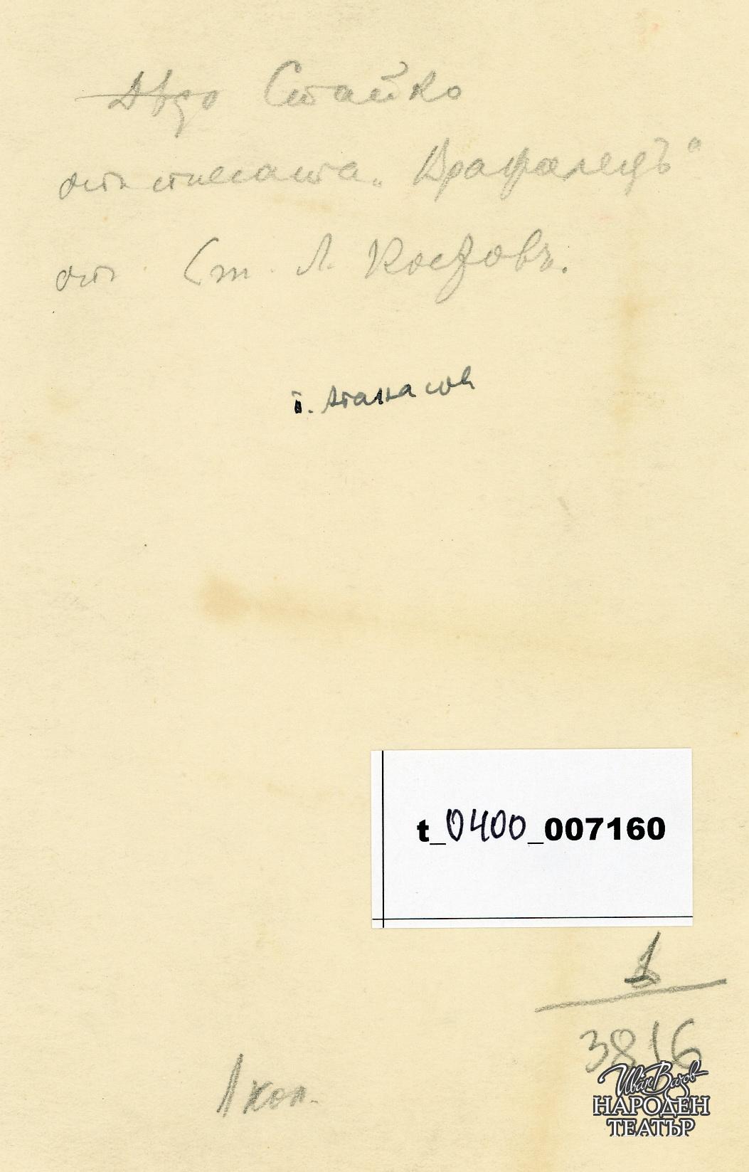| Права за ползване | Да се цитира източник: „Художествен архив НТ „Иван Вазов“ |