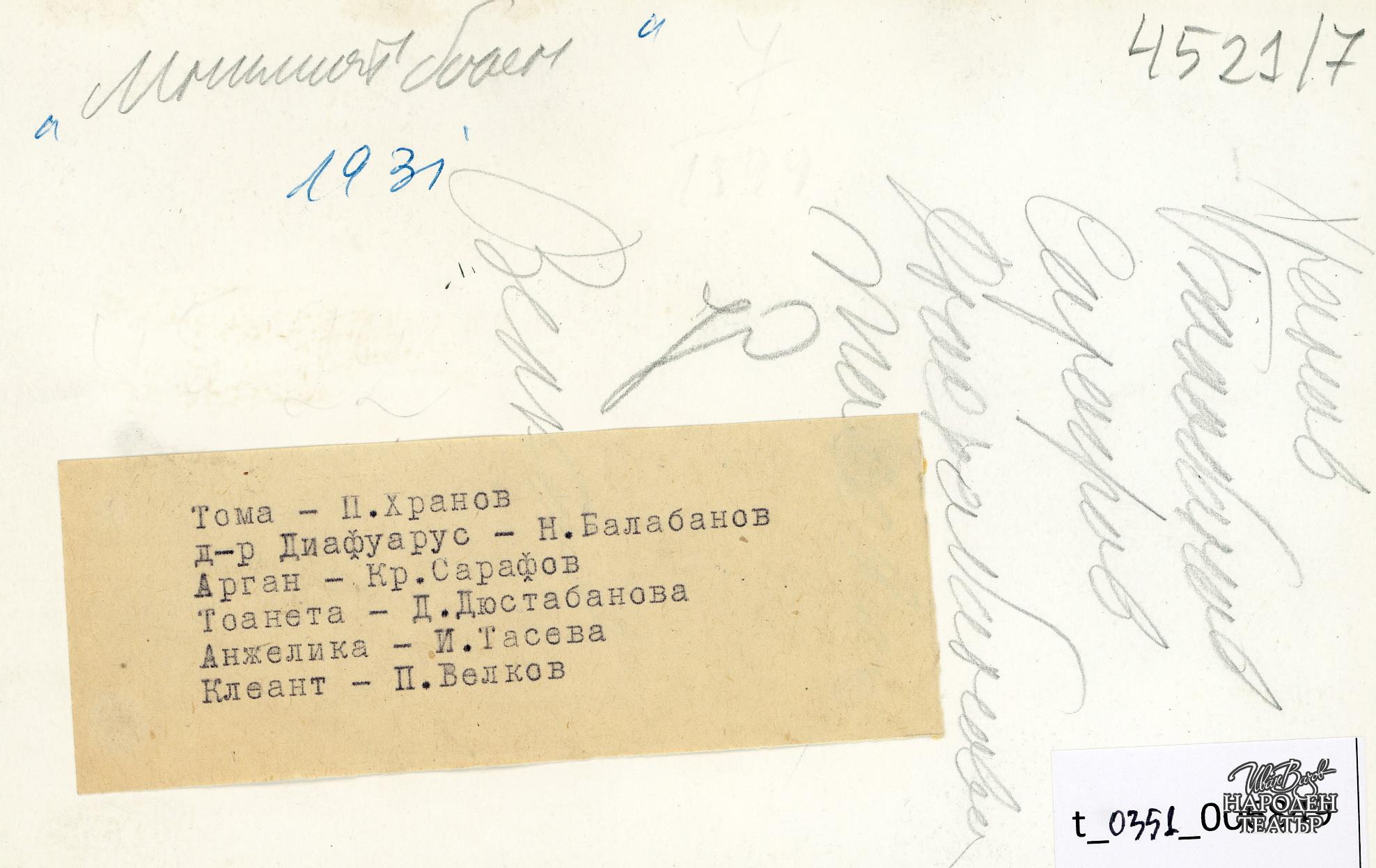 | Права за ползване | Да се цитира източник: „Художествен архив НТ „Иван Вазов“ |