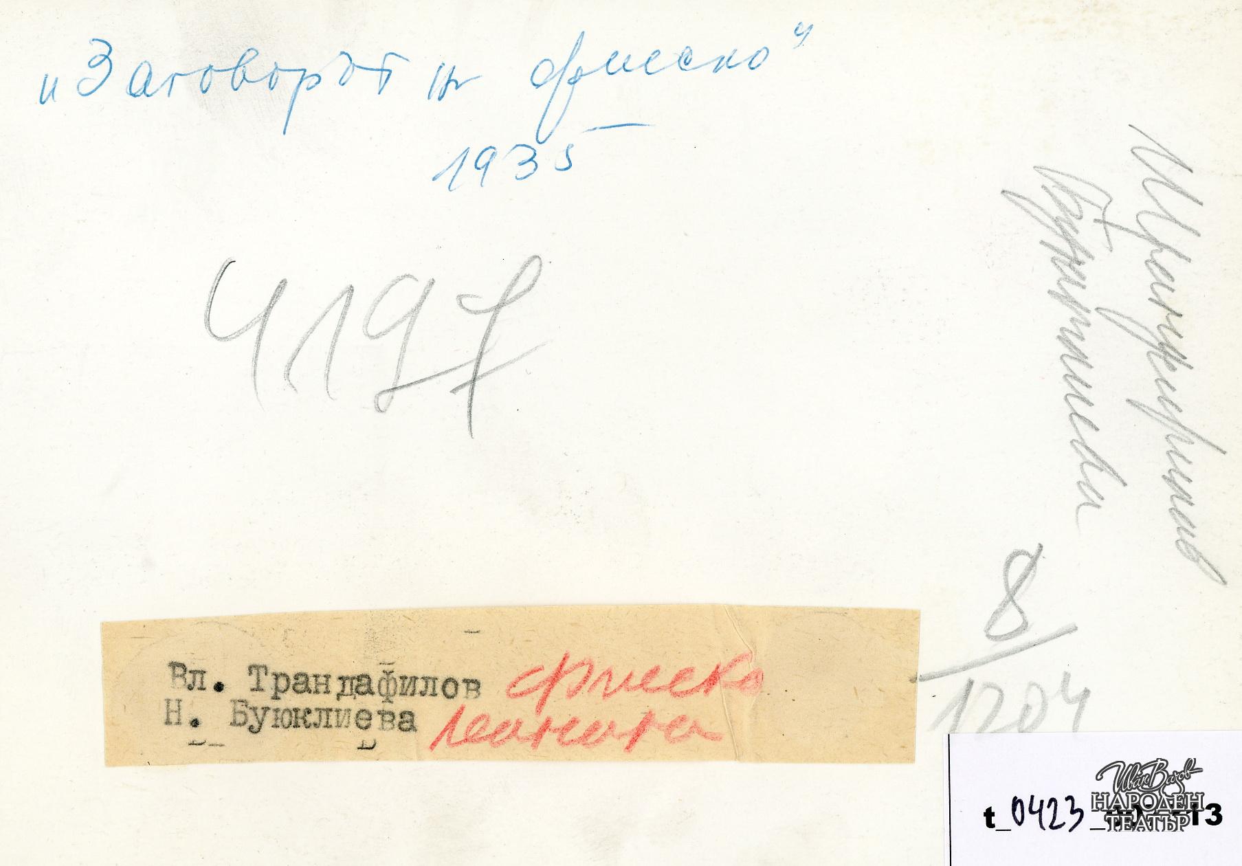 | Права за ползване | Да се цитира източник: „Художествен архив НТ „Иван Вазов“ |