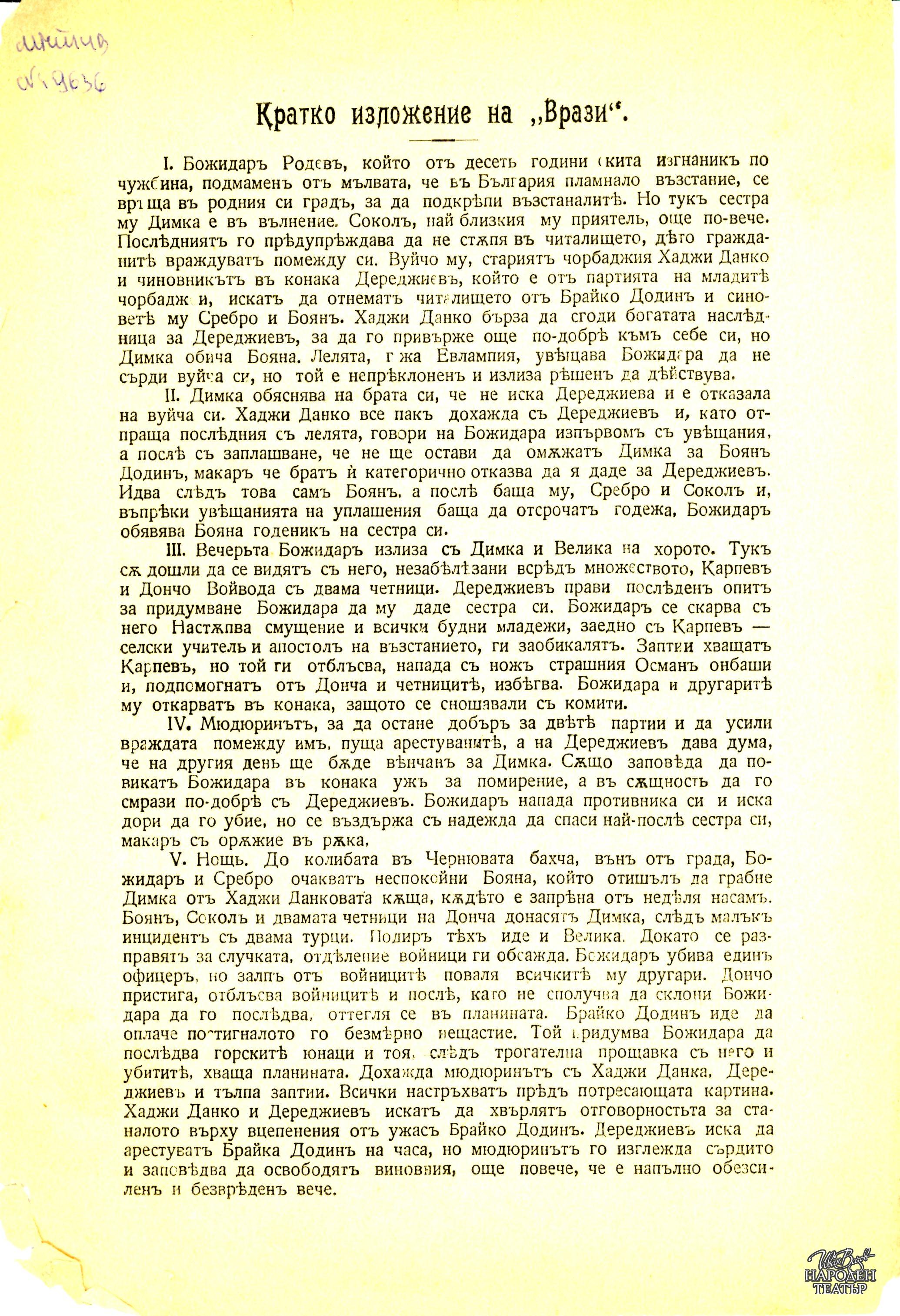| Права за ползване | Да се цитира източник: „Художествен архив НТ „Иван Вазов“ |