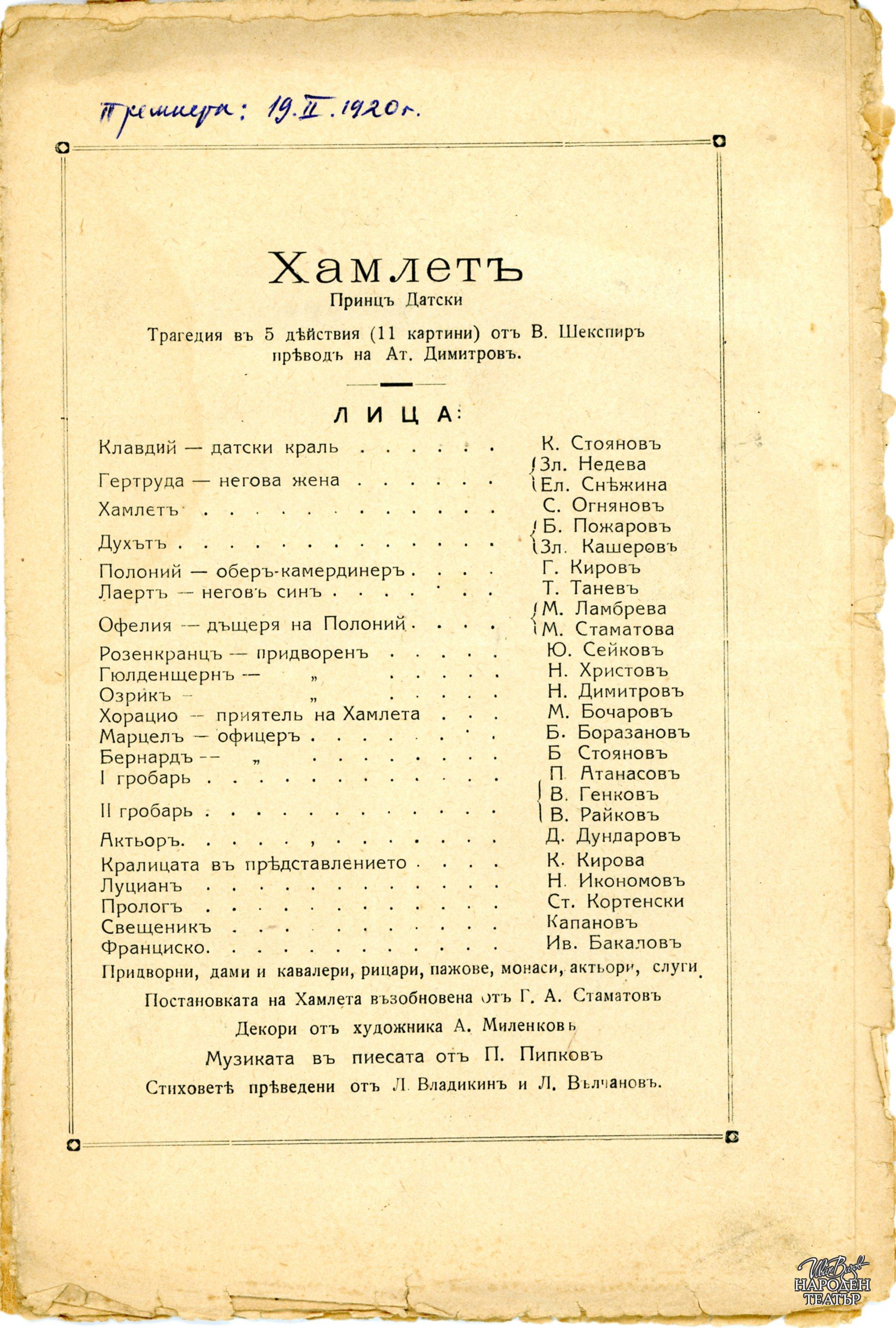 | Институция | Народен театър „Иван Вазов“, гр. София, България |