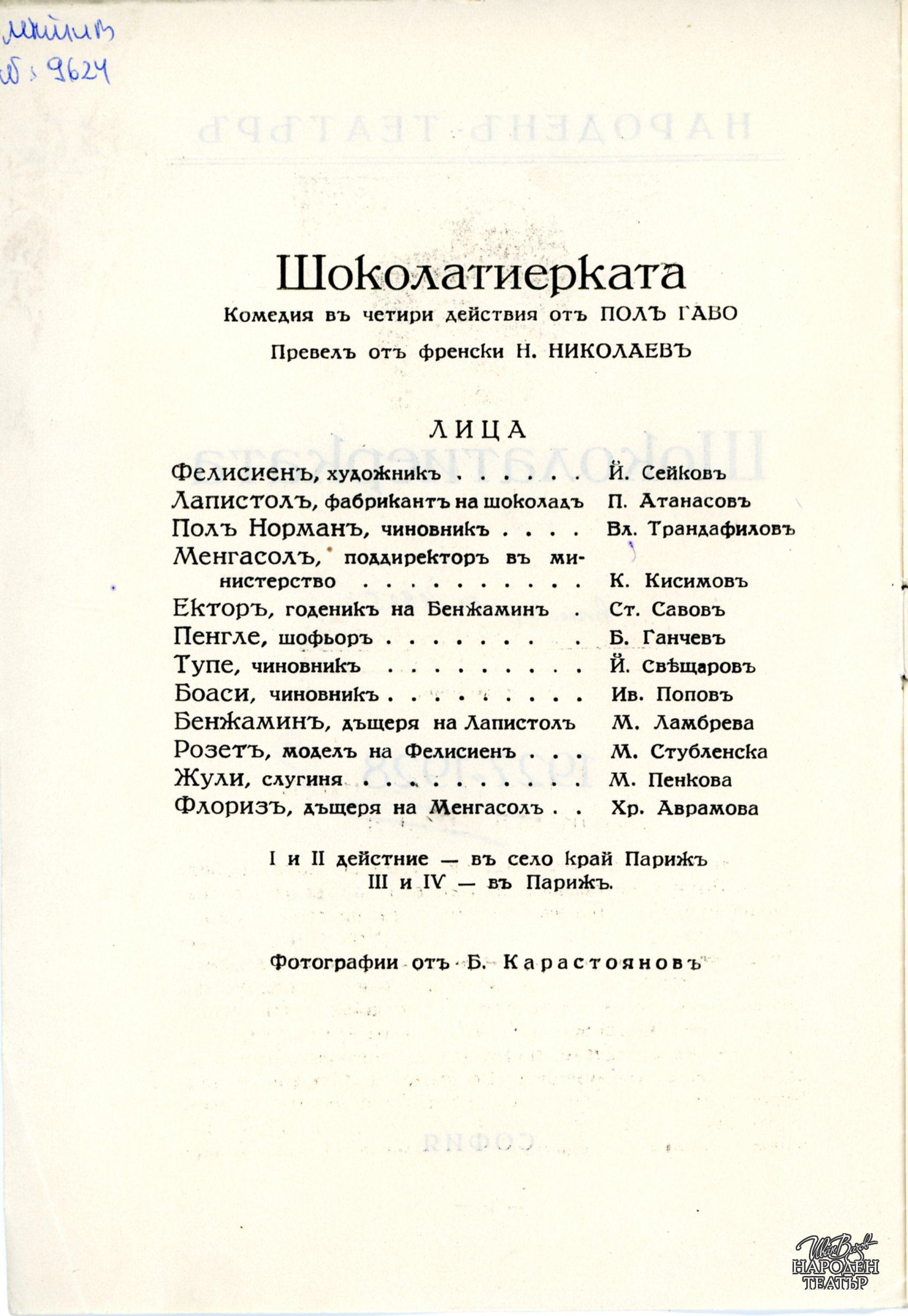 | Институция | Народен театър „Иван Вазов“, гр. София, България |