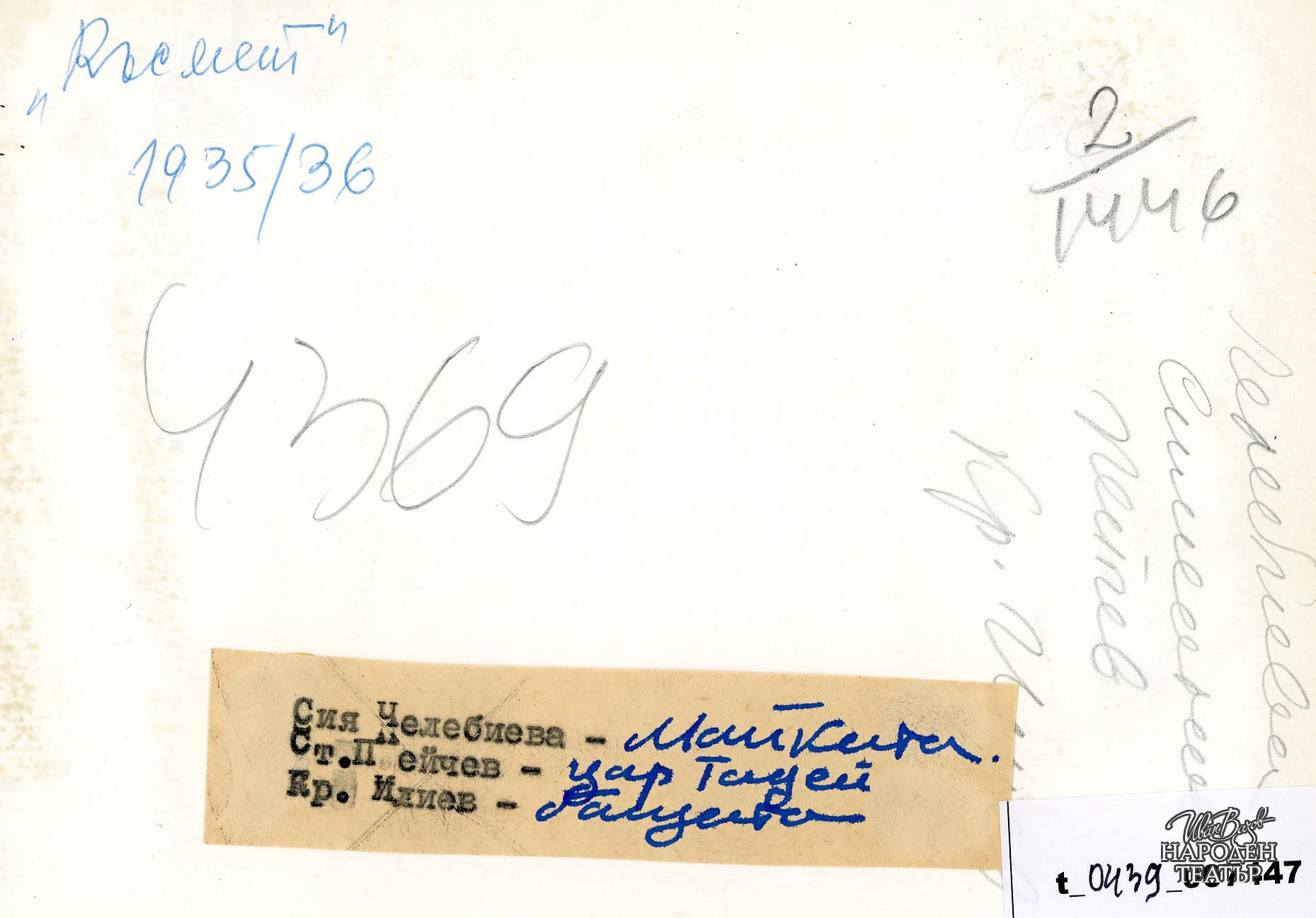 | Права за ползване | Да се цитира източник: „Художествен архив НТ „Иван Вазов“ |