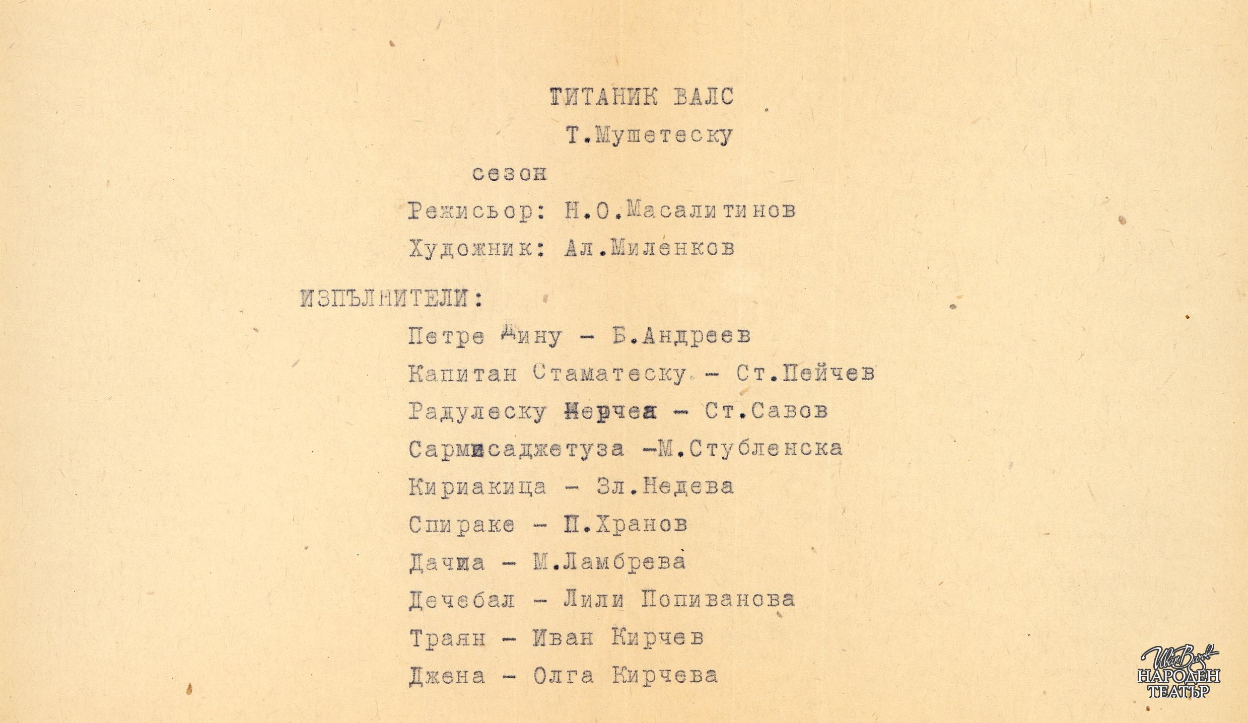 | Институция | Народен театър „Иван Вазов“, гр. София, България |