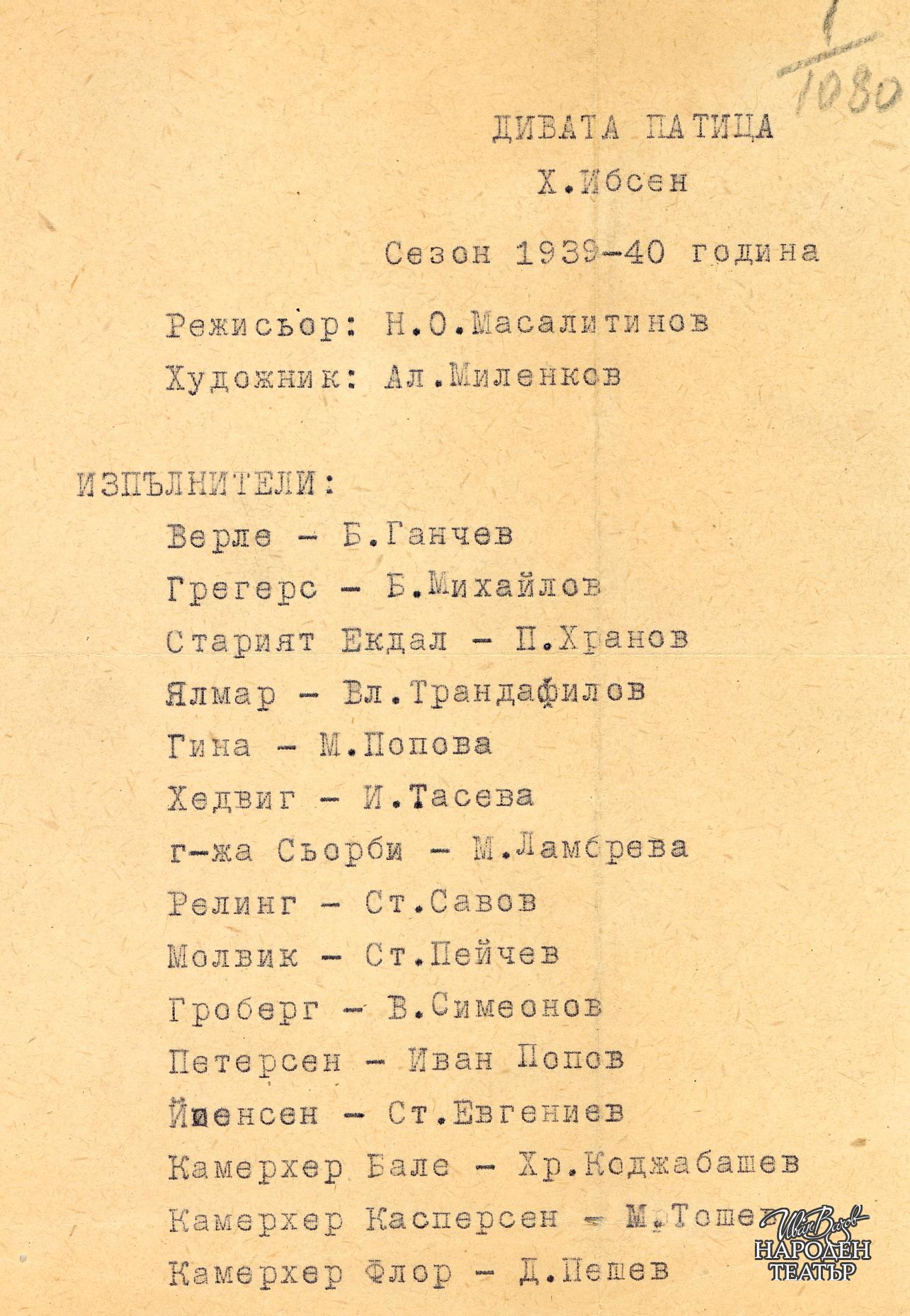 | Институция | Народен театър „Иван Вазов“, гр. София, България |