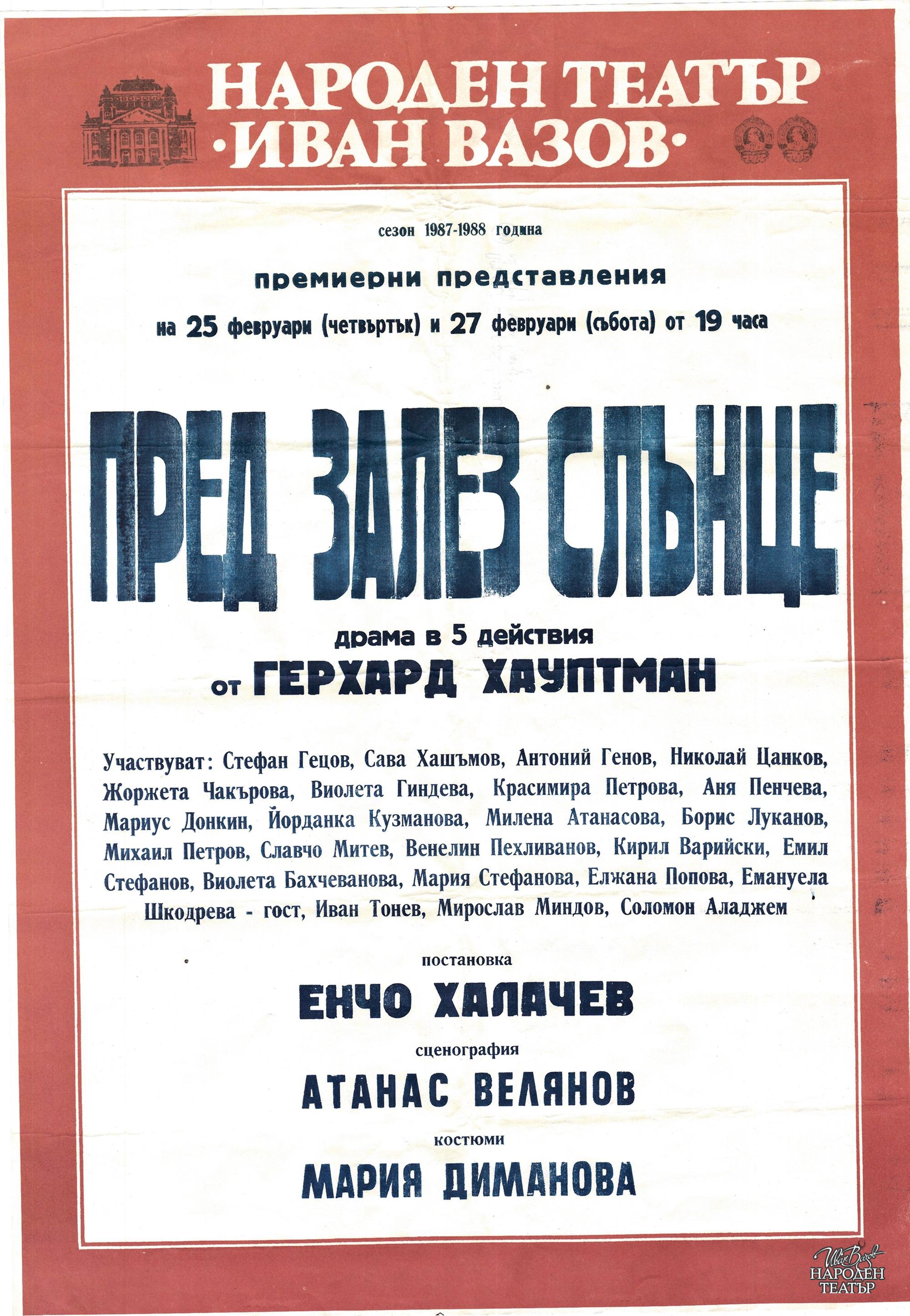| Институция | Народен театър „Иван Вазов“, гр. София, България |
