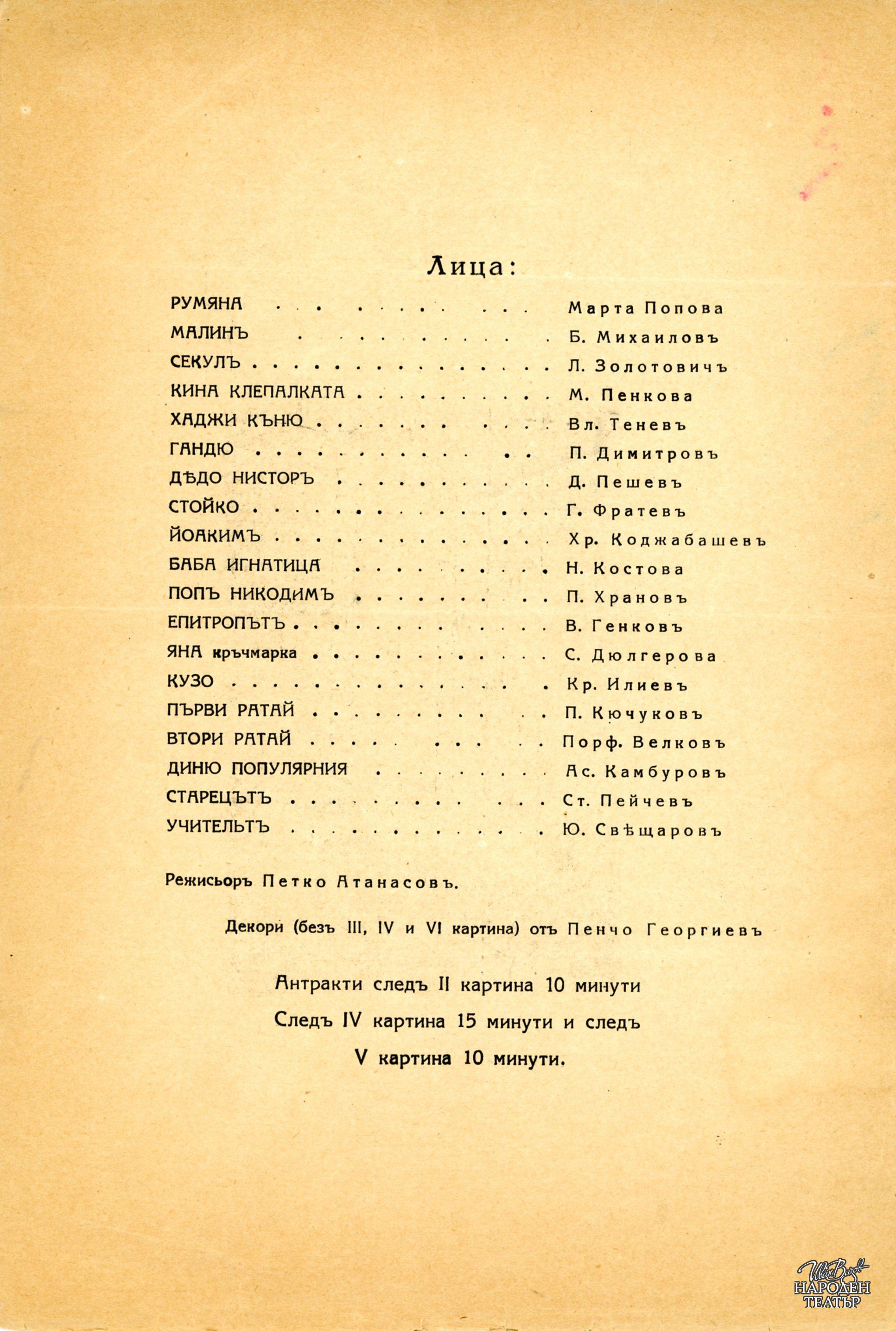 | Институция | Народен театър „Иван Вазов“, гр. София, България |