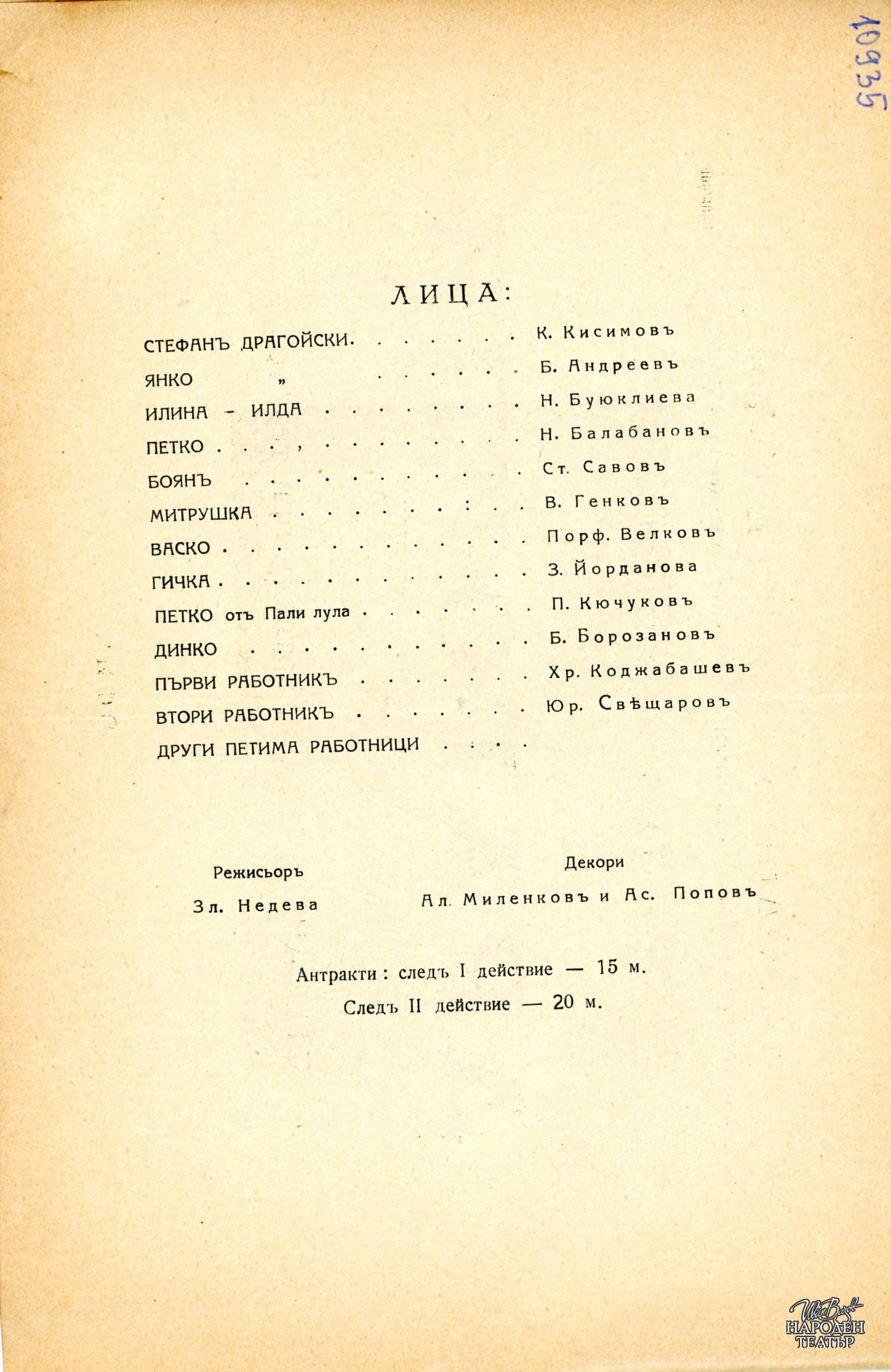 | Институция | Народен театър „Иван Вазов“, гр. София, България |