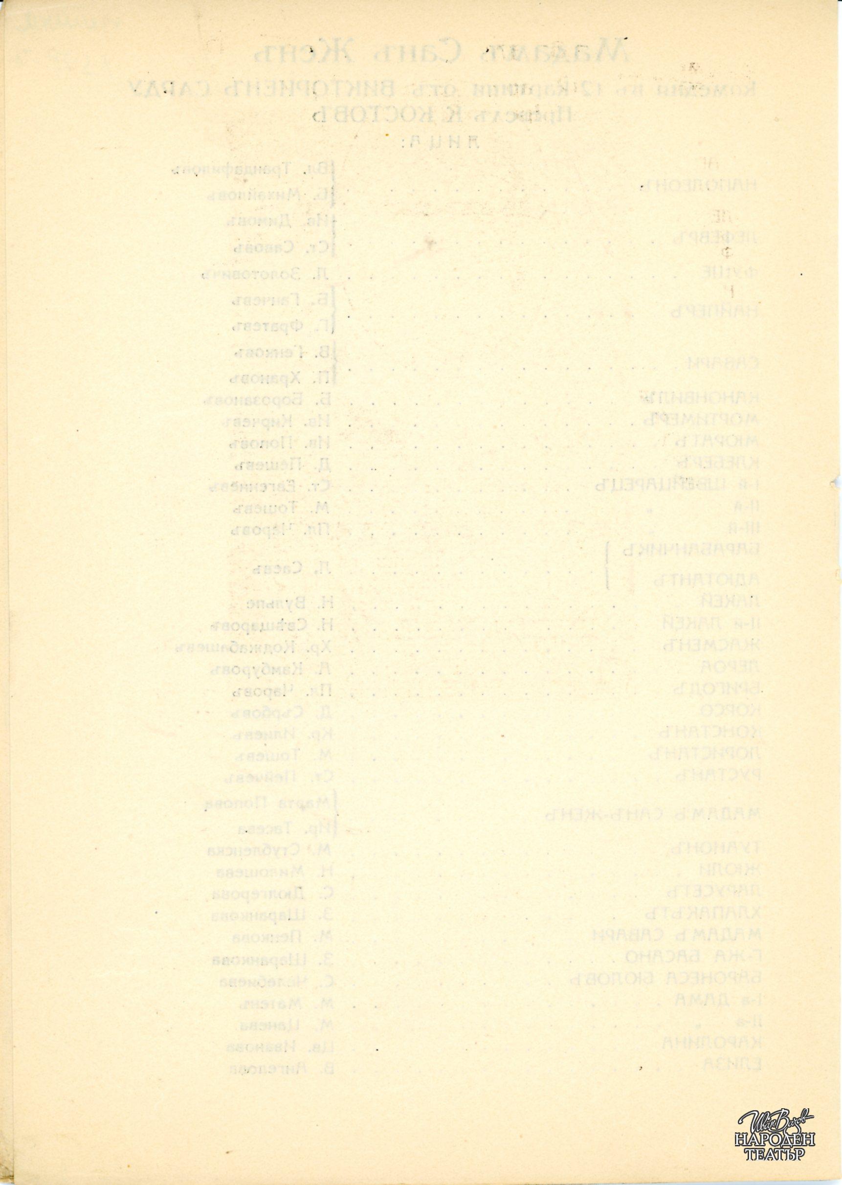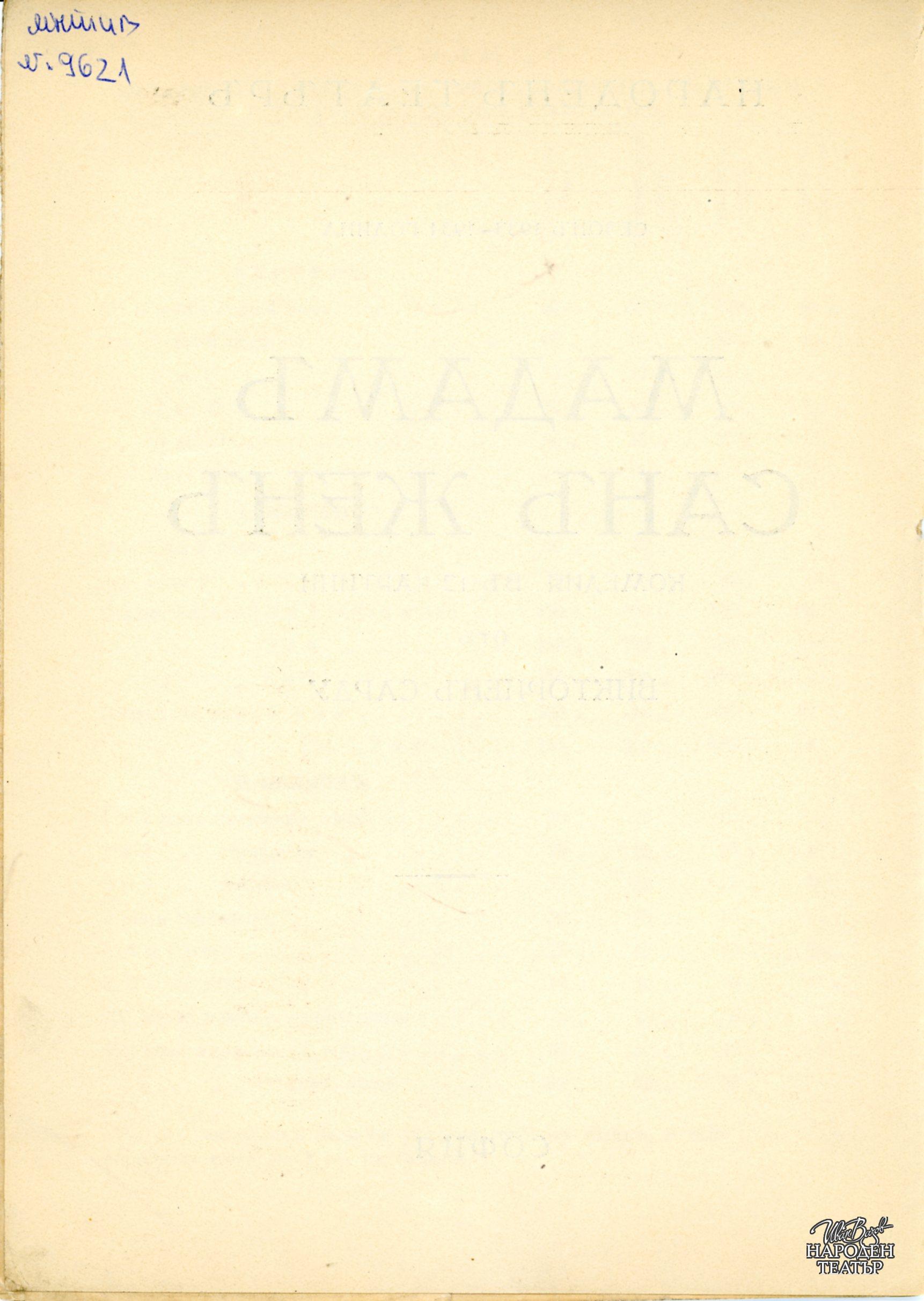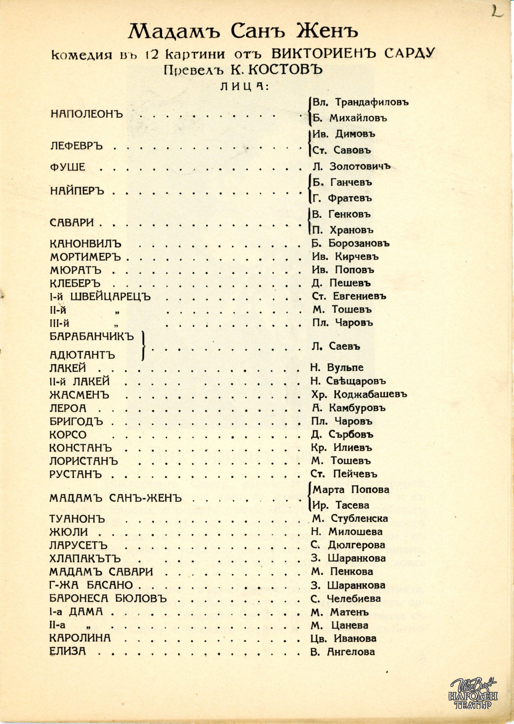 | Институция | Народен театър „Иван Вазов“, гр. София, България |