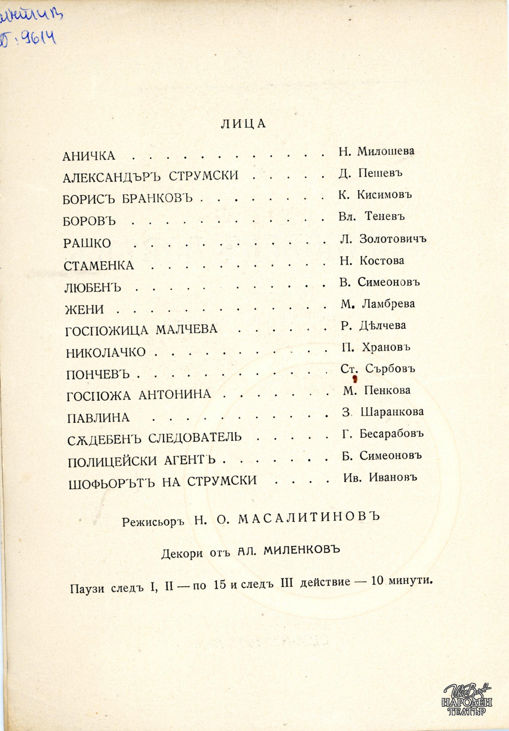 | Институция | Народен театър „Иван Вазов“, гр. София, България |
