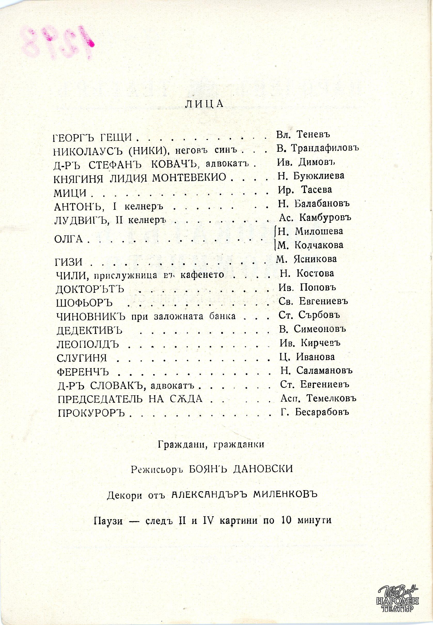| Институция | Народен театър „Иван Вазов“, гр. София, България |