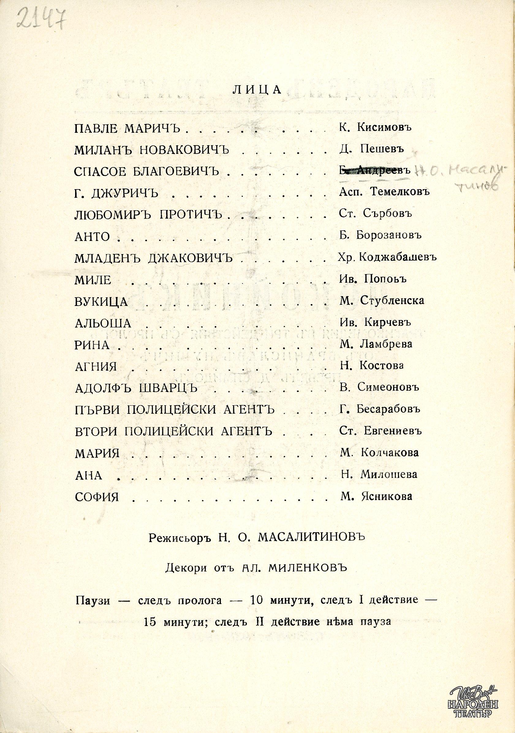 | Институция | Народен театър „Иван Вазов“, гр. София, България |